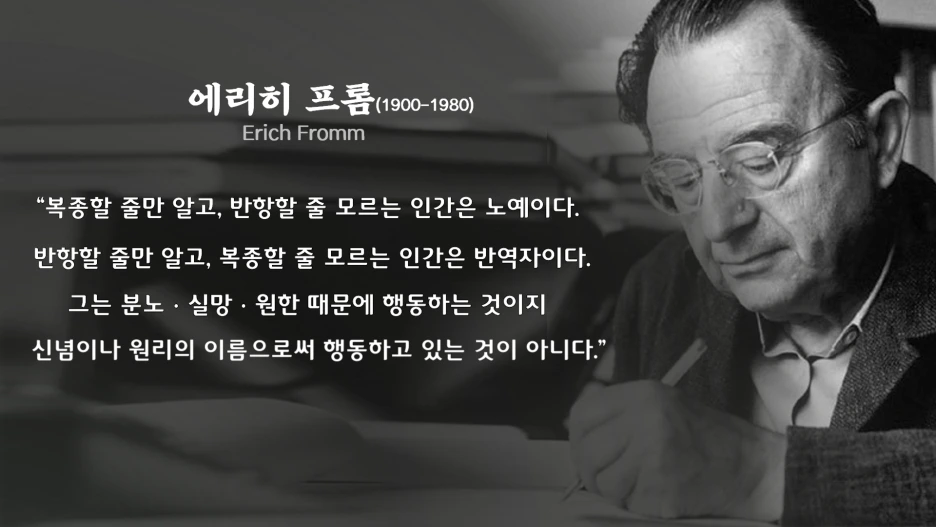 이리하여 정지우의 『분노사회』를 간단히 정리해보았습니다. 저자는 현대 사회의 분노가 관념에 대한 분노라고 설명합니다. 예컨대 우리는 마땅히 지켜져야 하는 <당연한 관념>이 위배될 때 분개하죠. 뒤집어 말하면, 인간의 분노는 인간이 관념적인 존재라는 사실을 방증하는 것이기도 합니다. 정당한 관념을 추구하는 인간은 부당한 사회에 분노하며 사회 개선에 기여할 수 있죠. 하지만 유감스럽게도 작금의 한국 사회의 분노는 정당한 관념에 대한 분노만으로 설명하기 어렵다고 저자는 말합니다. 자기 삶의 개인적인 불만과 좌절로부터 비롯된 분노를 부당한 사회 관념에 대한 분노인 것처럼 투사하는 사람이 많기 때문이죠. 에리히 프롬은 다음과 같이 말했습니다.