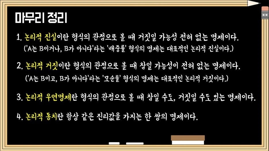 이상으로 논리학 기초개념에 대한 설명을 마쳤습니다. 이어지는 정언논리 게시글에도 많은 관심 부탁드립니다. 읽어주셔서 감사합니다.