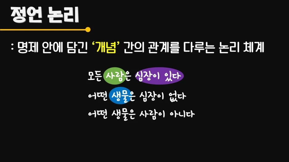 드디어 정언 논리를 뒤로 하고 명제 논리 챕터에 들어섰습니다. 이전에 배운 정언논리는 명제가 담고 있는 각 개념들 간의 포함 관계에 대한 논리 체계였죠. 예를 들어 아래와 같은 논증에서 정언 논리는 각 명제를 하나의 전체로 취급하기 보다 각 명제가 담고 있는 사람, 생물, 심장이 있는 것이라는 개념 간의 관계에 주목하는 체계였습니다.