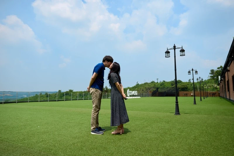 이런저런 얘기를 하며 커피를 마시다 남편이 사진을 찍자고 한다. 사진 찍히는 걸 별로 좋아하지 않는 내게 남편은 늘 물어본다. 사진 찍어도 되냐고… 오늘은 기분이다 찍혀주자!! “여기 와서 앉아봐! 그리고 나를 봐. 잠시만!!” 그렇게 사진을 찍기 시작한다. 창밖을 바라보는 모습, 걸어가는 모습, 커피 마시는 모습.. 사람 없는 카페를 놀이터 삼아 사진을 찍고 또 찍으며 놀다 야외로 나갔다. 한낮의 태양은 뜨겁지만 사진을 찍는 우리의 열정도 만만치 않았다. “여보, 나 찍고 싶은 사진이 있는데.. 타이머 설정하고 이리 와봐!!” 무슨 사진을 찍는 줄 모르는 남편은 타이머를 설정하고 온다. 어떻게 포즈를 취하면 되냐고 물어본다. 뽀뽀해!! 그렇게 남긴 뽀뽀샷!! 뽀뽀샷을 마지막으로 사진 놀이는 끝났다. 그리고 카페 데이트도. 조금 있으면 하교를 할 아이를 맞으러 가야 한다. 그리고 또 오후에 있을 병원투어도 준비해야 한다. 초기 감기 기운이 있는 남편을 쉬게 할 타이밍이다. 약 한 시간을 운전해서 집에 도착. 그렇게 우리의 데이트는 끝났다.