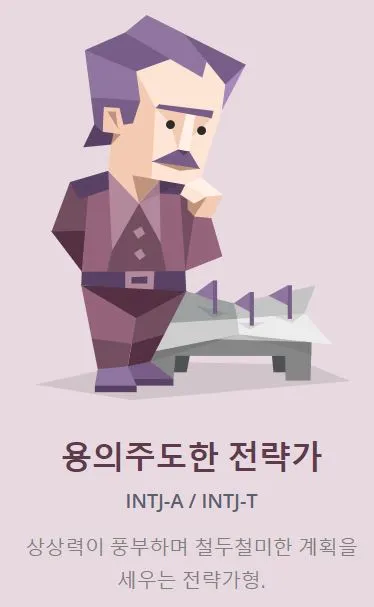 대학생 때 했을 때 INTJ는 '과학자형'이었는데, 요즘은 '전략가형'으로 이름이 바뀐 것 같다. 앞에 수식어가 못미덥지만.. (전혀 용의주도하지 않은 1인)