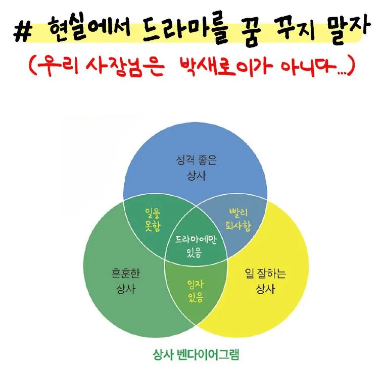 정녕 성격 좋고, 일 잘하고, 훈훈한 동료는 드라마에만 있는 것일까. 또 하루의 씁쓸한 날이 쌓여간다.