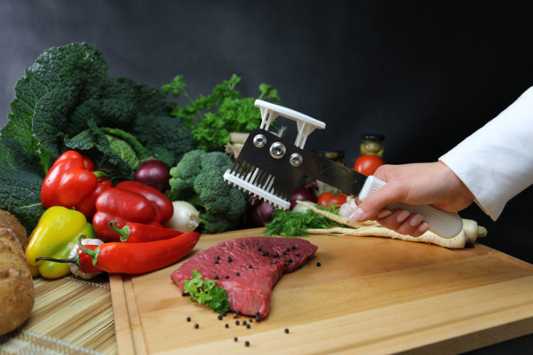 그동안 돈카츠 먹는데 인당 3-4만 원 지출하는 게 아까워서 집에서 만들까 여러 번 생각했었다. 한국에서 냉동 돈까스 사 먹는 건 맛없어서 만들어서 냉동해놓던 시절을 떠올리니까, 고기 망치로 두들기는 거 고생스럽고 귀찮고 엄두가 안 났다. 돈카츠는 고기를 굳이 얇게 펴지 않아도 되니까 자연스레 연육기를 알아보게 되었는데, 미국에서 파는 소형 수동 연육기들은 전부 스탬프 형태다. 고기 위에 도구를 올리고 손으로 눌러 찍어서 칼날을 고기 안으로 밀어 넣는 시스템이다. 하지만 미국 온 이후로 팔꿈치에 문제가 생기고 제대로 낫질 않아서 그런 종류의 행동을 하면 통증이 있고 증세가 심해지는지라, 피자나 빵 반죽도 그만뒀고, 돈카츠 만들기는 그냥 꿈이었다.