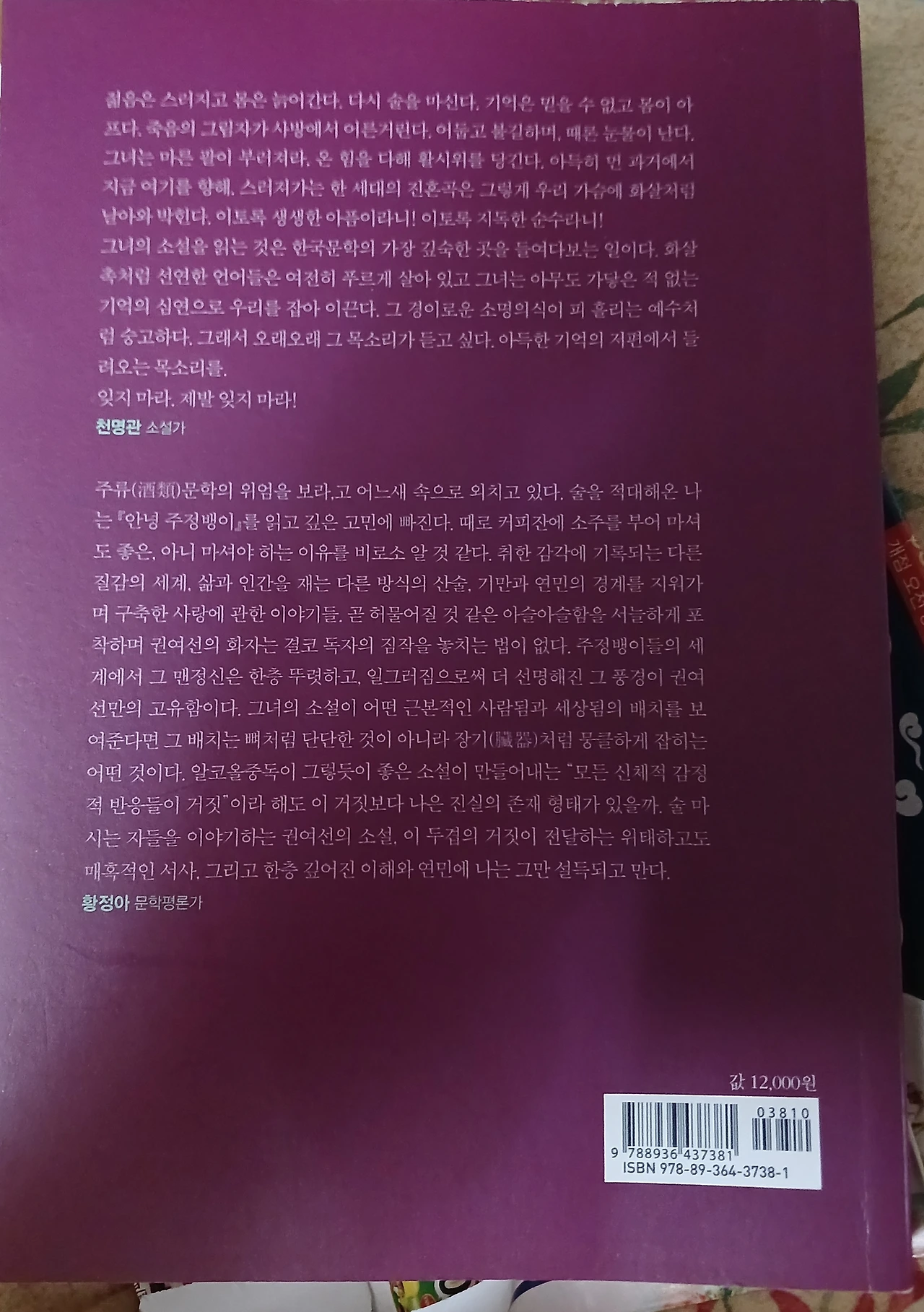 (안녕 주정뱅이 소설집 p259 신형철 문학평론가의 글)