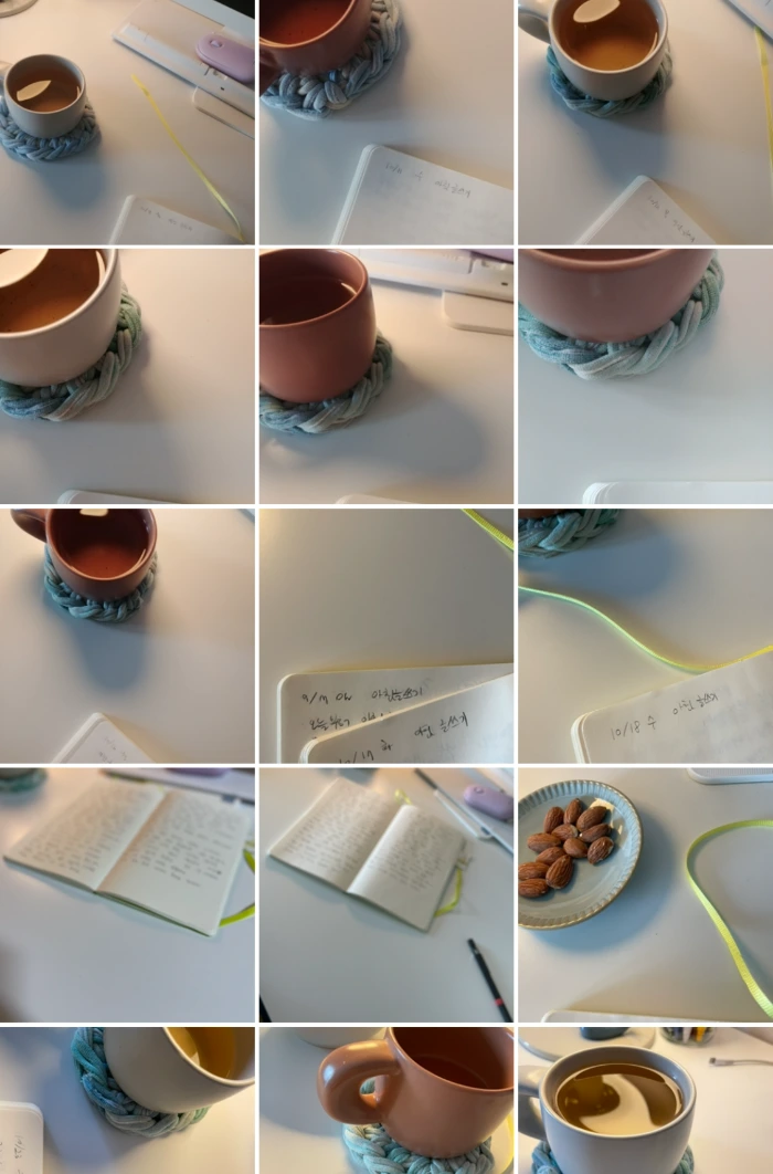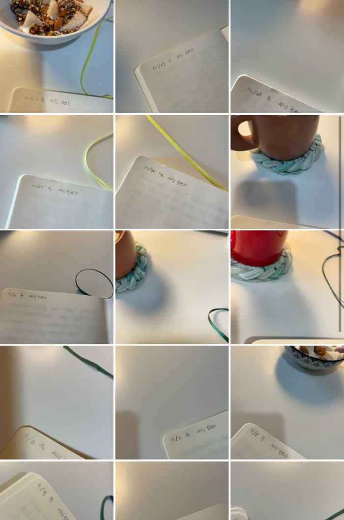 그 다음주는 10분을 당긴 시간에서 15분을 더 당겼다. 이때부터 조금씩... 버거워졌다. 평소보다 25분 일찍 일어나는 거니까. 대신 아침 시간에 훨씬 여유가 생겼다. 이 여유시간에 뭘 해야할지 고민에 빠졌다. 그리고 늘 내 삶에서 '해야하는데 못 하는 것'들의 목록을 썼다. 진짜 못하는 것이 맞는지 확인해보고 싶었다.
