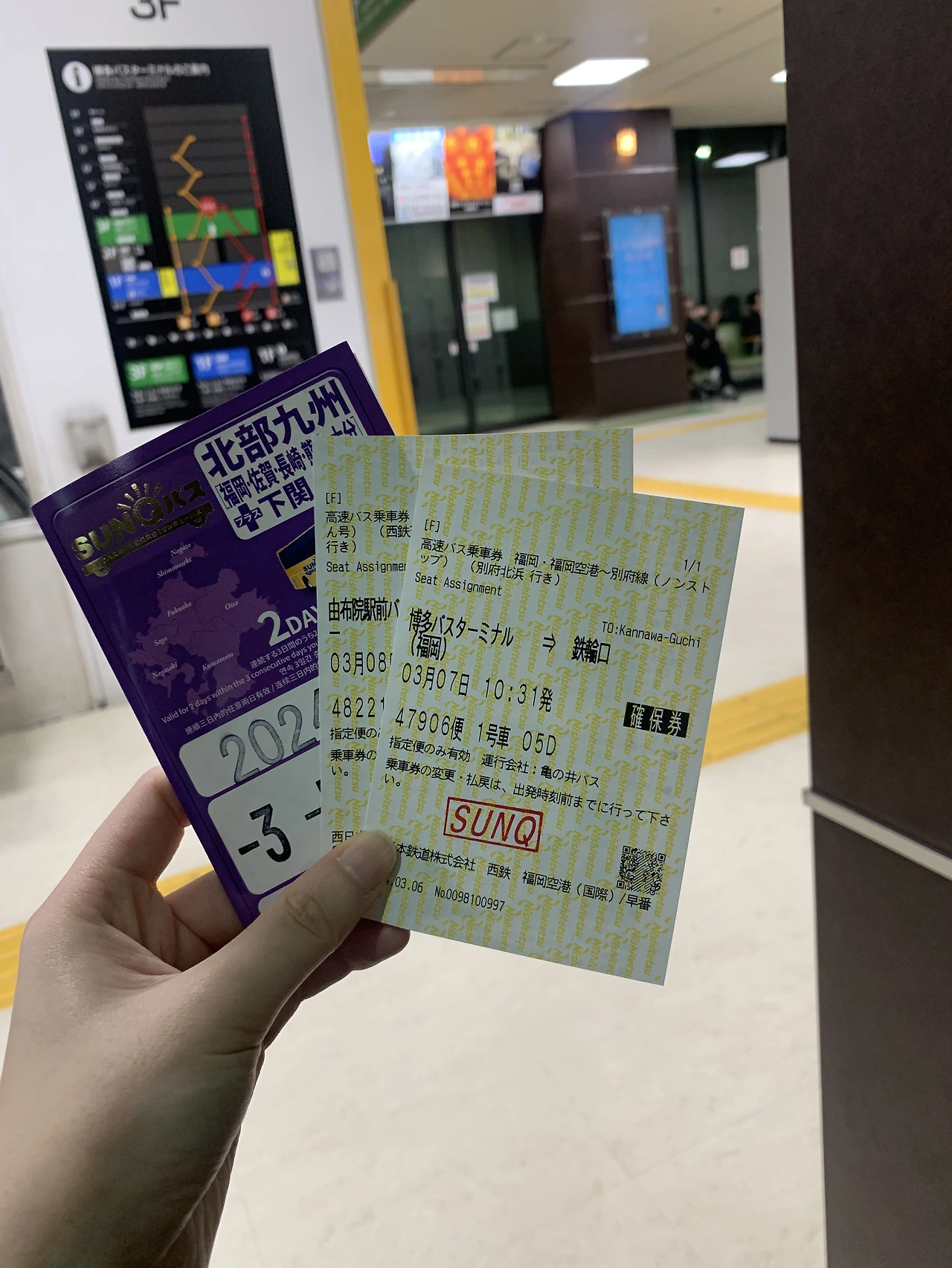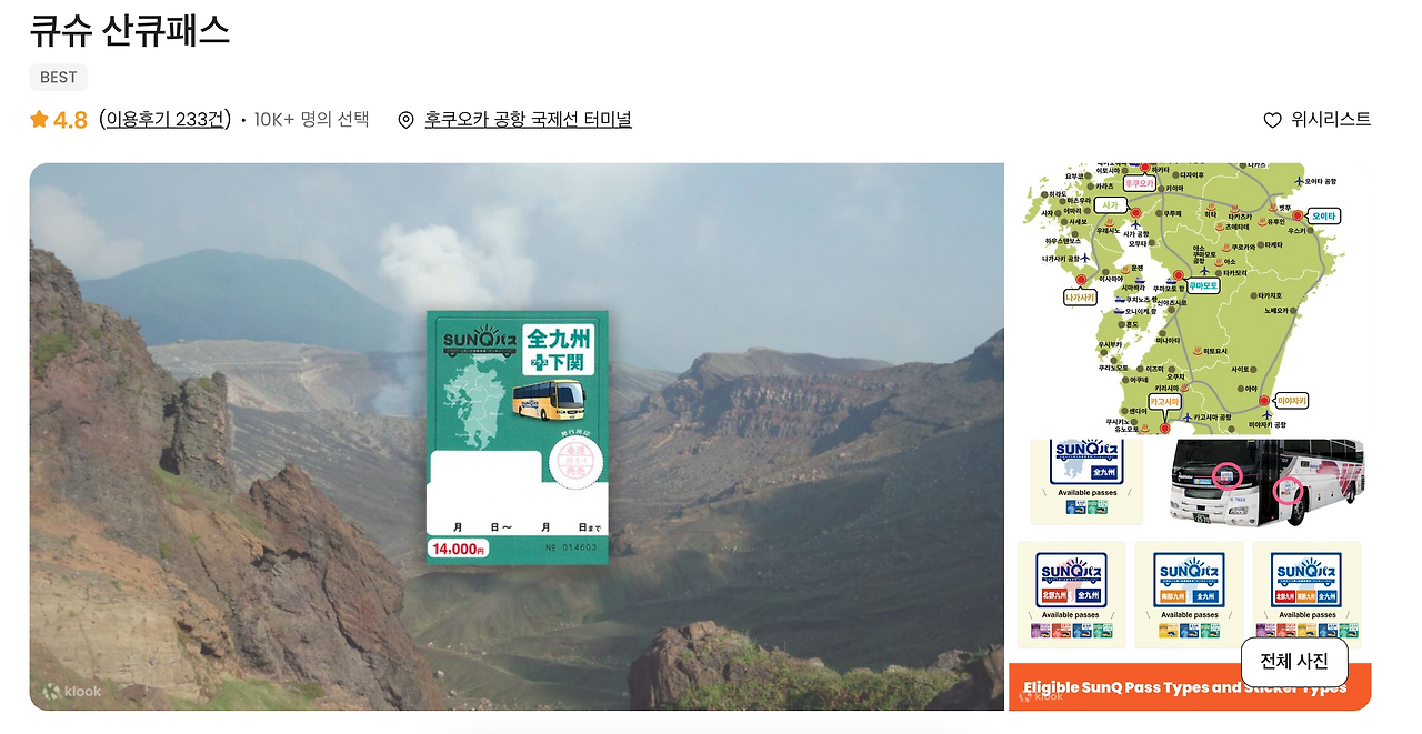 사진에서 보다시피 후쿠오카 근교로 운행하는 고속버스다. 하지만 산큐패스를 산다면 고속버스뿐 아니라 시내의 일반 버스도 이용이 가능하다. 나는 8일에 벳푸-유후인-후쿠오카 순으로 움직여야 했기에 고속버스가 훨씬 이득이었다. 그래서 버스로 최종 결정을 하고 좌석 예약을 진행했다. 1일 권부터 4일권까지 다양하게 구매할 수 있고 참고로 2일권은 현장 구매가 안되니 무. 조. 건 사전에 예매를 하고 가야 한다!