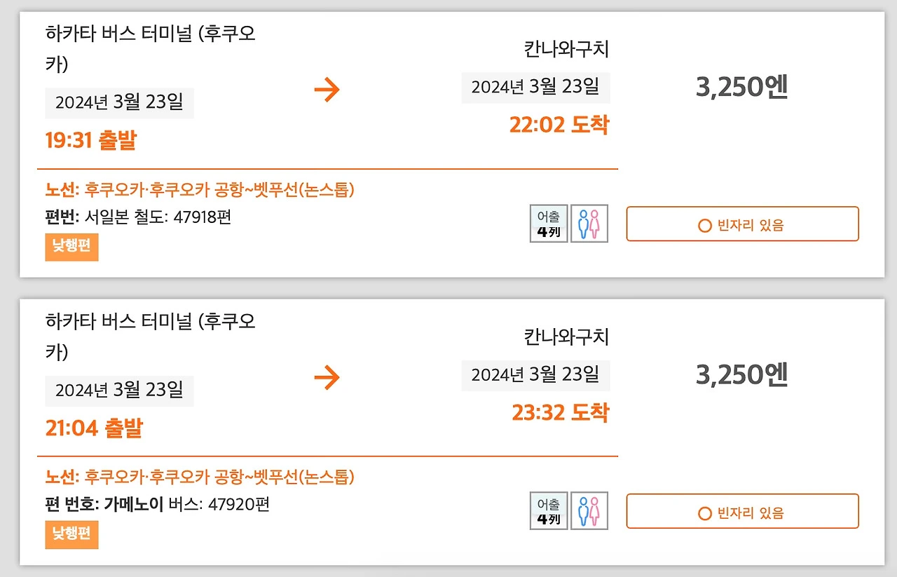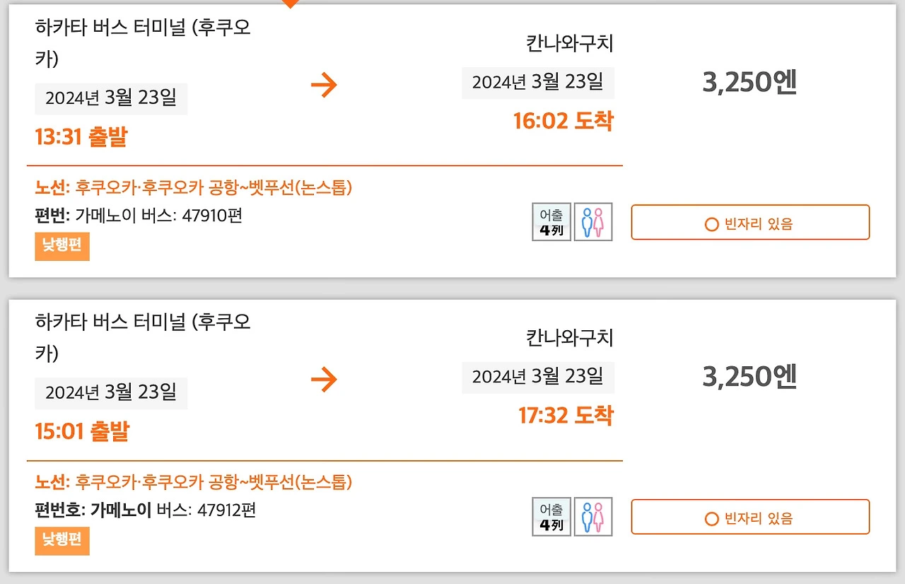 이동 : 하카타버스터미널 ~ 간나와구치정류장 (환승 x)