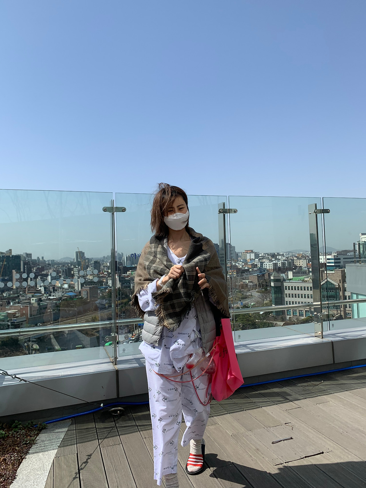 결국 항암 주사 맞는 도중 핑 도는 어지러움에 옆에 계시던 어머니께 붙여달라 부탁드렸고, 당황한 어머니는 산쿠소 패치 위 방수테이프의 필름을 떼지 않았음을 샤워하며 알게 되었다.