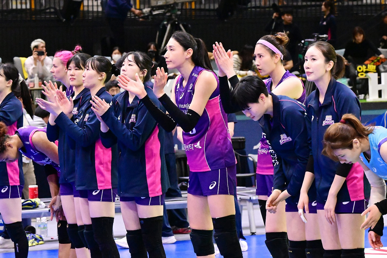 졌지만 잘 싸운 흥국생명 선수들 (사진 출처 : KOVO 홈페이지)