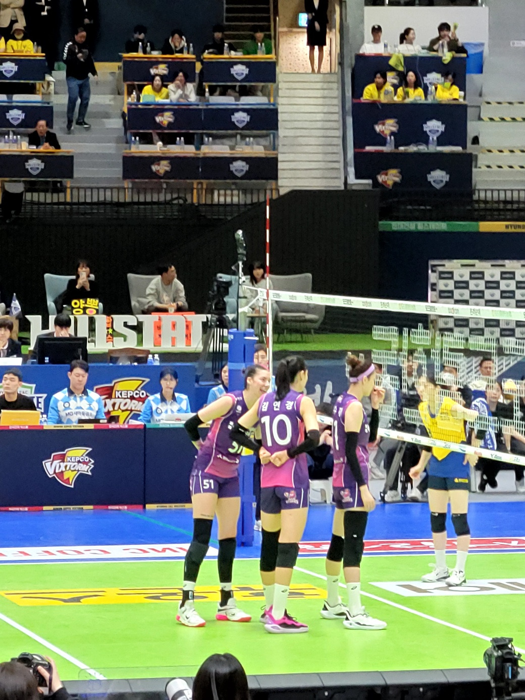 요새 도파민 중독이라는 말 많이 하잖아요. 5세트 막판, 현대건설이 점수를 따라가고 마침내 듀스까지 가는 엄청난 경기가 되었을 때, 진정 제 도파민이 폭주하고 있다는 걸 느꼈습니다. 이런 경기가 있나 싶은 경기를, 심지어 그것도 챔피언결정전에서, 직접 경기장에서 보는 행운을 얻다니요!
