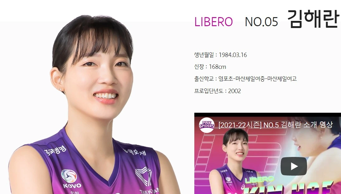 흥국생명 김해란 1984년 3월 16일생