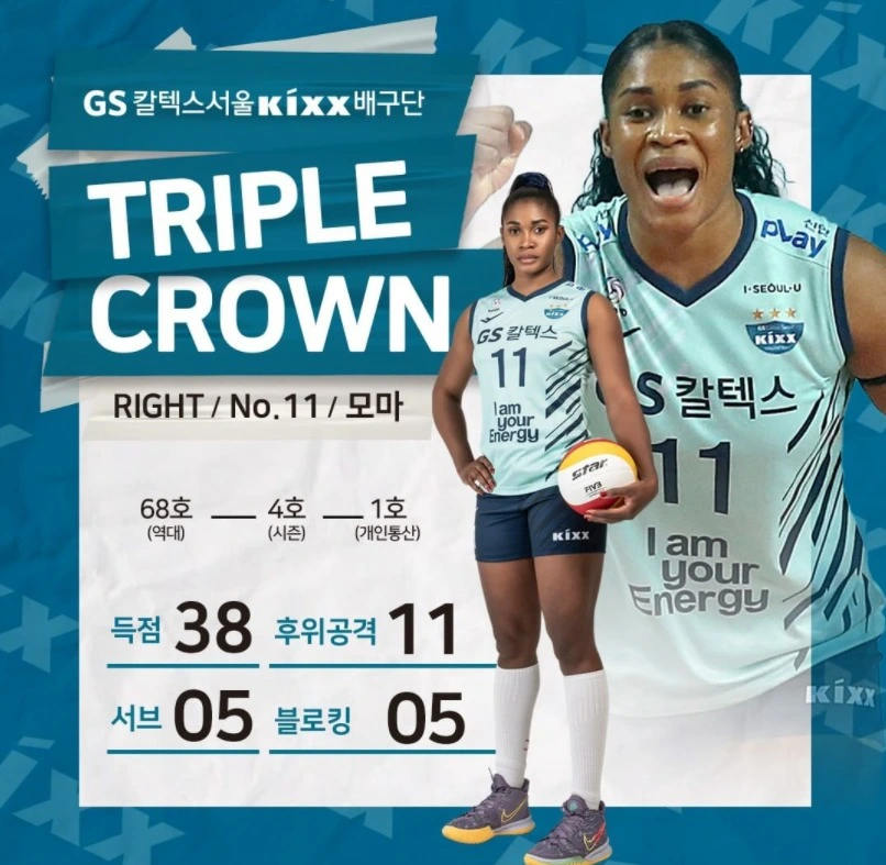 트리플크라운을 달성한 GS칼텍스 모마 선수 / 이미지 출처 : GS칼텍스 배구단 인스타그램