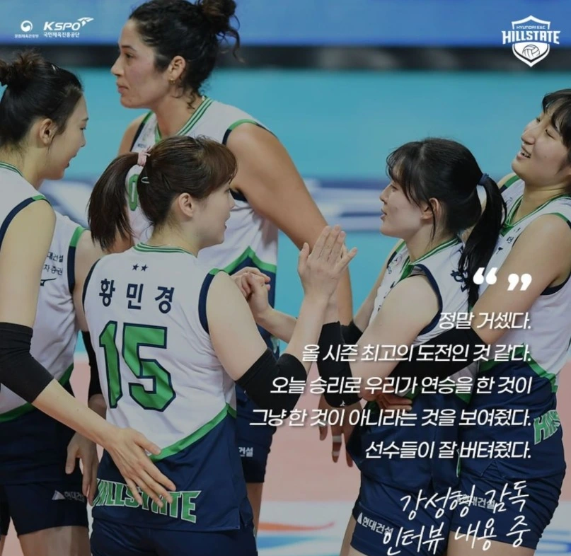 14연승을 달성한 현대건설 강성형 감독의 인터뷰 / 이미지 출처 : 현대건설 배구단 인스타그램