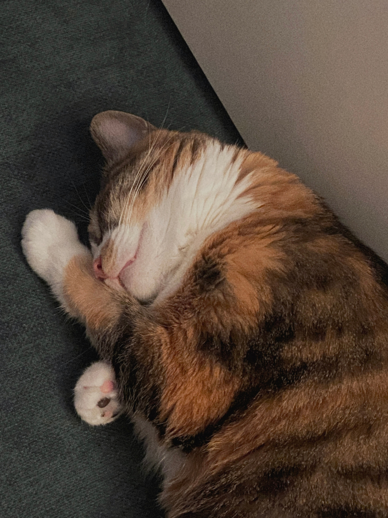 내 옆에서 잠든 고양이의 등을 쓰다듬는다. 부드러운 털 위로 미끄러지는 손을 따라 흰 양말을 신은 뒷발 하나가 까딱, 너구리 같은 줄무늬 꼬리 끝이 가볍게 춤을 춘다. 사랑스럽다. 어쩜 이렇게, 10년 동안 단 한 번도 사랑스럽지 않은 적이 없는지. 매일 봐도 귀엽고 볼 때마다 귀엽다는 말이 끊이질 않는다. 웃길 정도로 나는 고양이를 볼 때마다 귀엽다고 비명을 지른다. 항상 처음 본 듯이. 게다가 냄새나는 똥을 밟고 집안을 돌아다녀도, 카펫 위에 토를 해도, 물건을 넘어뜨려도, 집구석 비닐을 씹어 먹어도 다 용서가 된다. 그냥, 존재만으로 귀엽고 사랑스러워서 용서가 된다. 고양이는 그저 존재하는 것으로 자기 할 일을 다 하는 것이다. 또한 나는 고양이가 의자 위나 캣타워에 앉아있을 때 자세를 낮추고 포옹하듯 가만히 끌어안고 있는 걸 좋아한다. 부드럽고 따뜻한 털 뭉치인 이 작은 아이를 안고 있으면 기분이 좋다. 가슴팍에 귀를 대면 작은 심장이 두근대는 소리가 들린다. 살아있는 고양이! 이 시도 때도 없이 귀엽고 사랑스러운 생명체를 신기해하며 눈을 바라본다. 눈을 지그시 깜박여주면, 사랑받는 걸 아는 고양이가 같이 눈을 감는다.