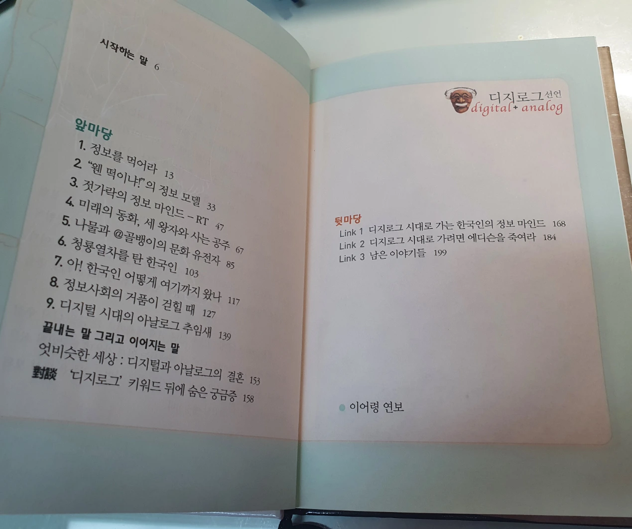아날로그와 디지털의 분단과 그 양극화에 대해서는 아는 사람도 걱정하는 사람도 드물다. 그렇기 때문에 먹는 것으로 상징되는 아날로그의 문화 코드와 인터넷으로 대표되는 디지털 문화 코드를 읽는 학습과 훈련이 절실히 요망된다.