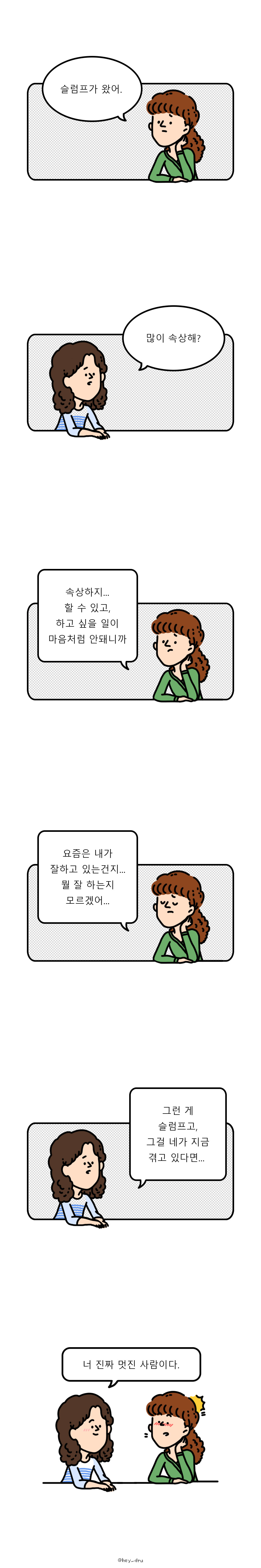 현실에 멈춰있는 자신을 보며속상함에 자책하겠지만,그런 걱정을 하는 네가 참 멋있다.잘하고자 하는 마음,더 나아지고자 하는 마음."그 예쁜 마음을 가진 너는진짜 멋진 사람이야"