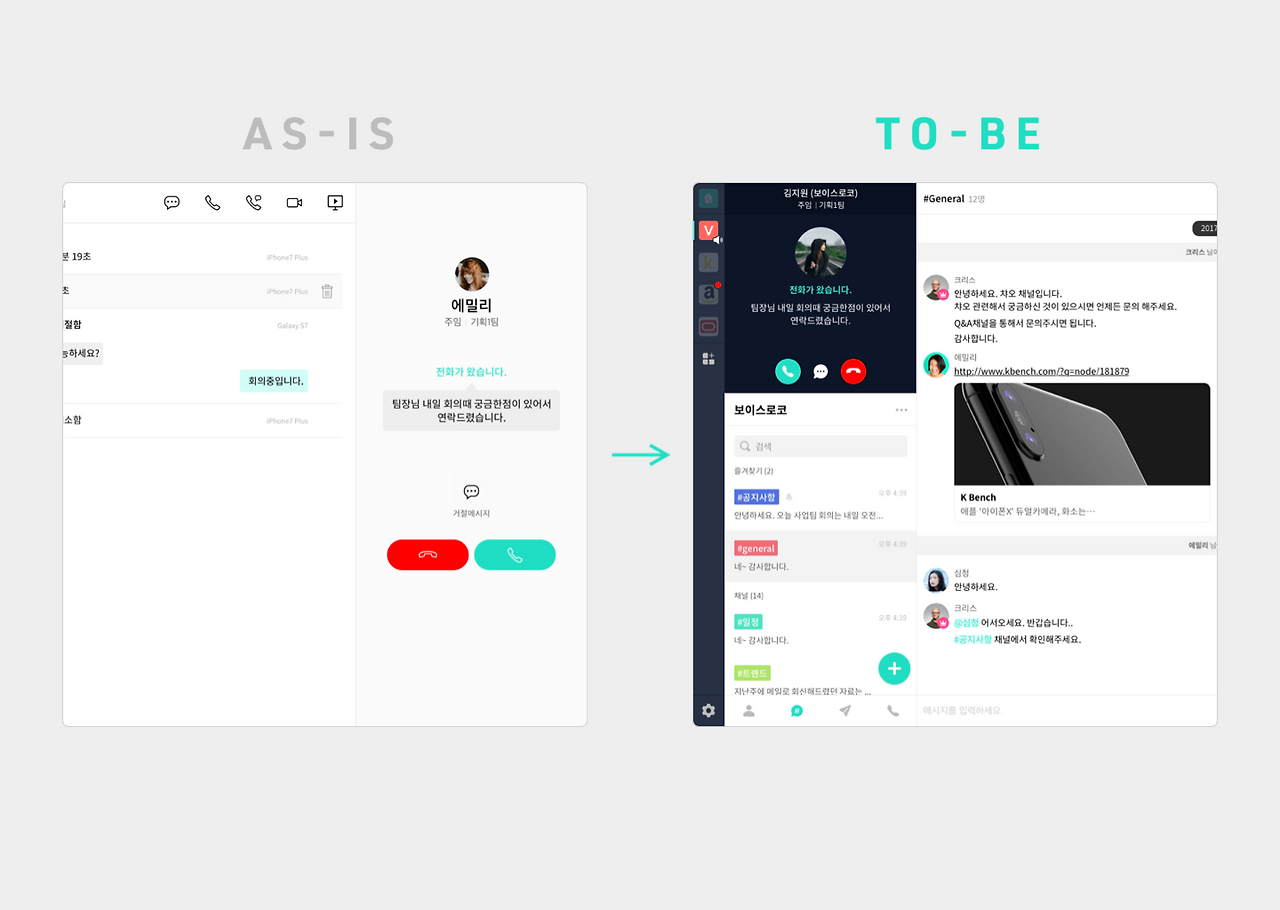 시작은 Call UI 개선으로 시작한 전면 개선한 프로젝트였지만 이미 시장에 많은 협업 커뮤니케이션 플랫폼들과 경쟁하기 위해 전체적인 UI/UX 개선이 필요한 시점에 진행하였기에 좋은 기회였다고 생각합니다.