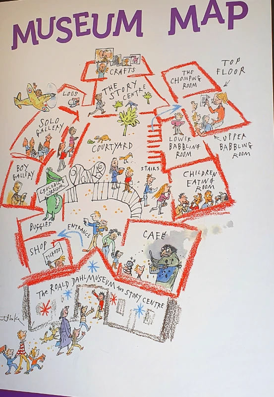 박물관은 3개의 전시실과 스토리 센터, 액티비티 룸과 카페로 나눠져 있었고, 3개의 전시실은 로알드 달 어린 시절을 소개하는 Boy 갤러리, 전투기 조정사 비행기 모형과 글을 쓰던 오두막 공간을 볼 수 있는 Solo 갤러리, 그의 작품을 이야기로 체험하는 스토리센터로 이루어져 있다
