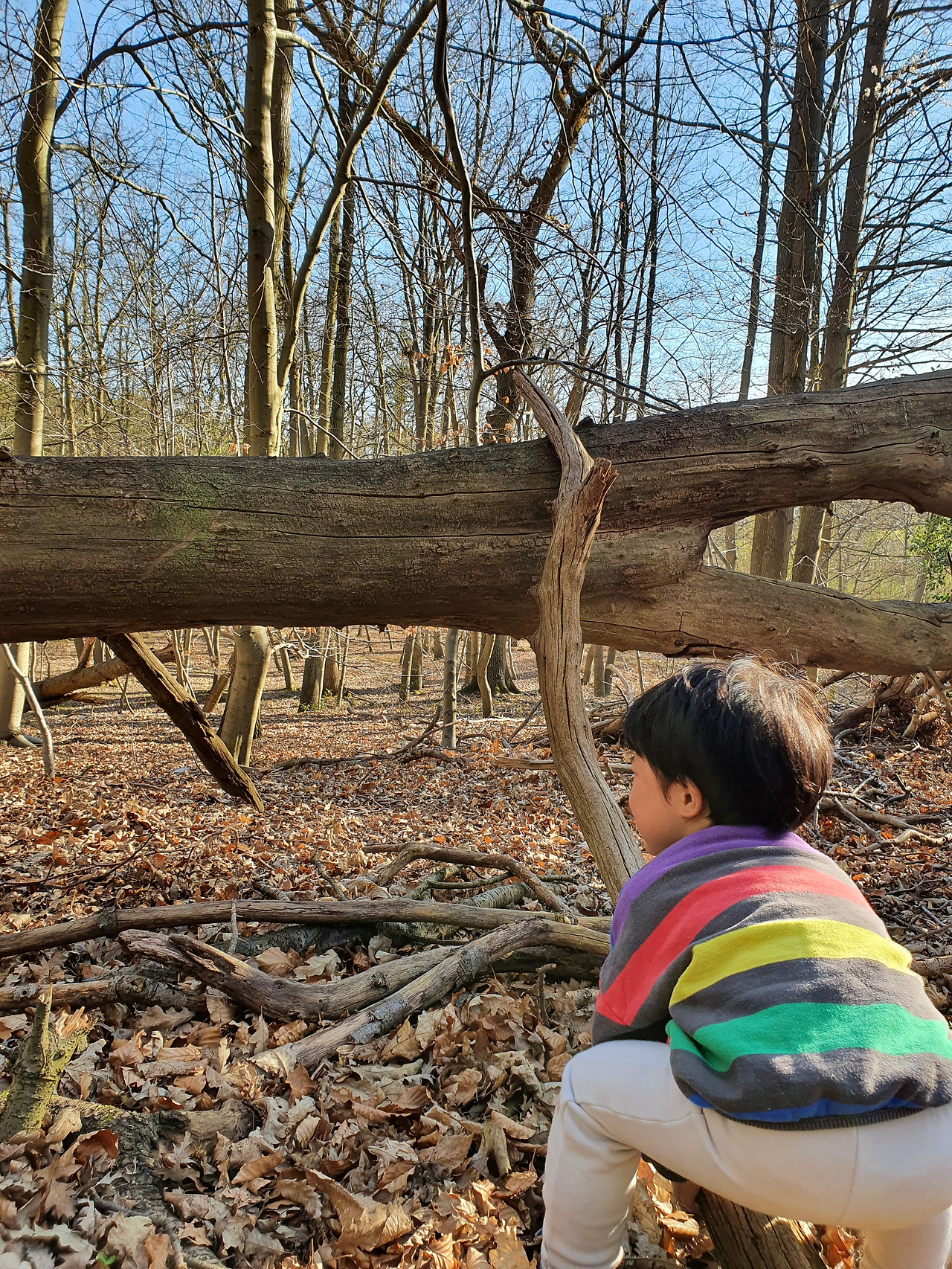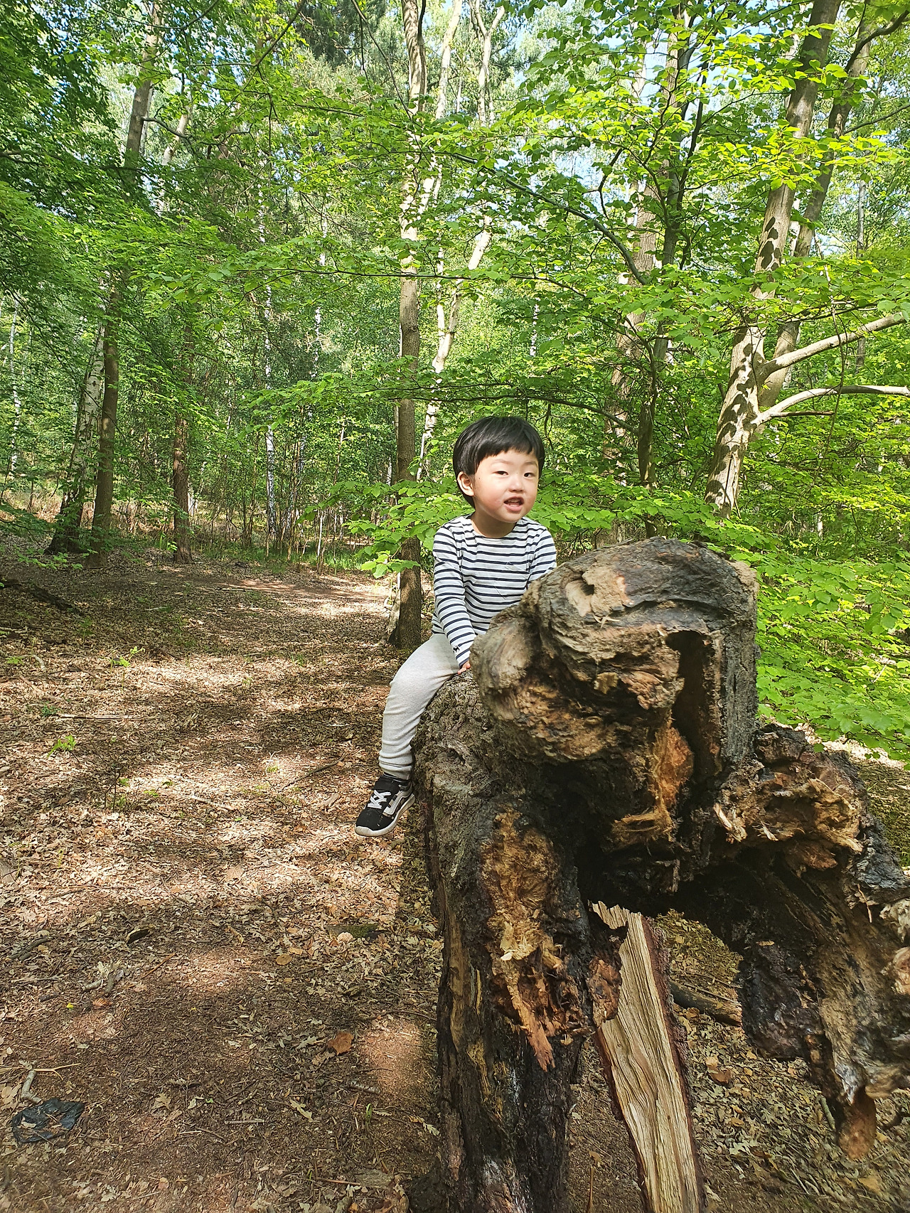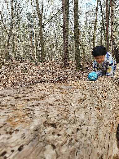 며칠이지만 숲의 학교 다닌 경력을 이용해 숲 속 놀이터에서 자연을 이용해 놀이로 운동을 시작 했다. 여기저기 쓰러진 통나무 위를 아슬아슬 균형을 잡아가며 끝까지 통나무 건너기, 흔들흔들 통나무를 마구 흔들어 균형 잡기 놀이, 숲은 숨을 곳이 많아서 숨바꼭질하기 최적의 장소가 되고, 바스락바스락 낙엽 이불도 덮어보고, 떨어진 솔방울을 한 가득 담아 나무 맞히기 놀이, 개미를 한참 관찰하고, 집으로 돌아와 개미와 나무 관련된 책을 펴 보는 아이가 신기하고 대견스럽다.