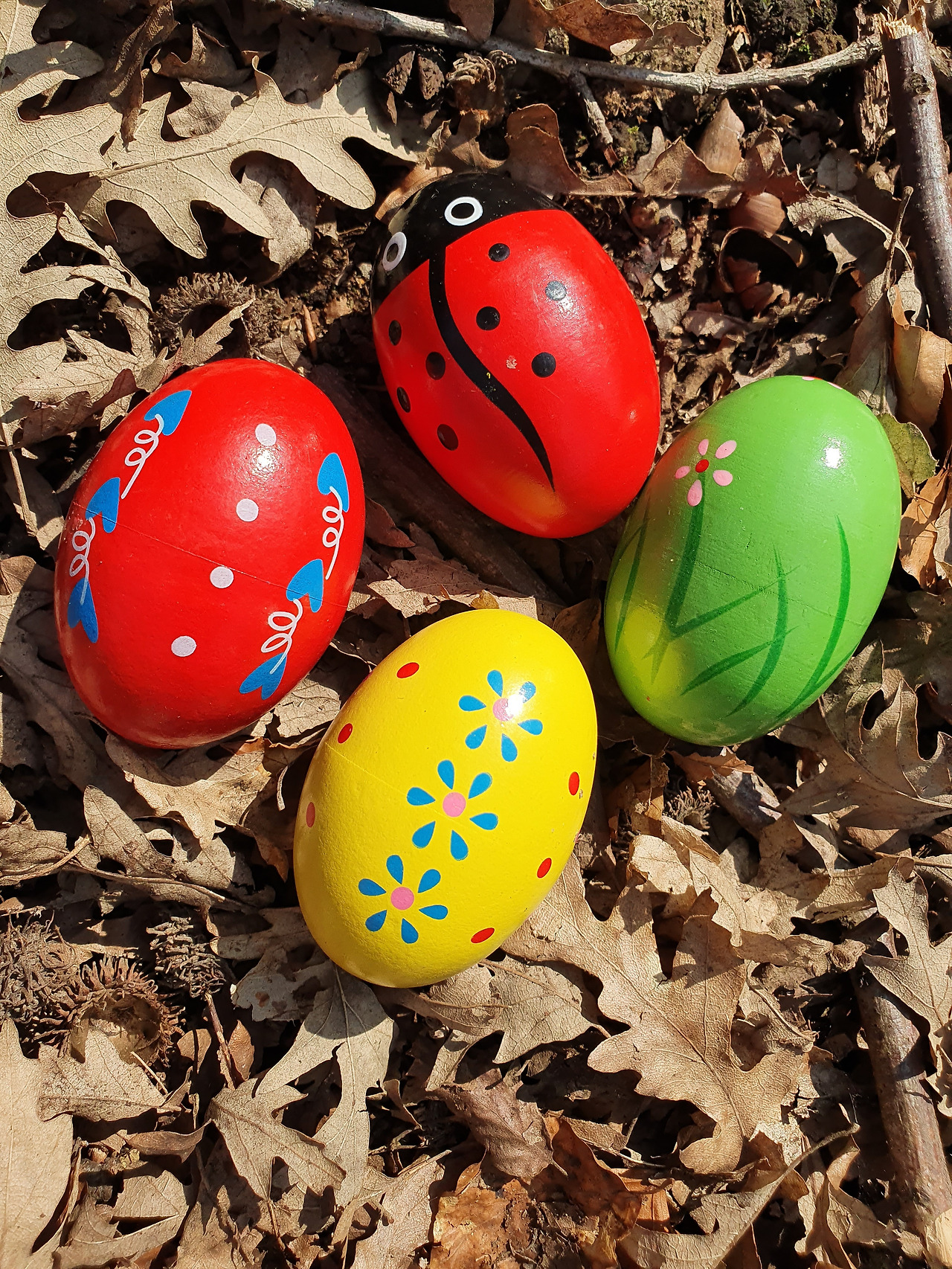 자연 놀이터도 일주일 지나니 지겨워하는 것 같아 어제부터는 보물찾기 놀이를 시작해 보았다. 마침 금요일부터 부활절 연휴가 시작되어이때 아이들 하는 놀이 에그 헌터(Egg Hunter)인데, 한국의 보물찾기 같은 거라고 해서 올해 한번 참여해 보고 싶었던 축제였다. 공원이나 농장에서 부활절을 기념해서 각종 행사와 함께 달걀 모양의 모형들을 숨겨놓고 그것을 찾는 놀이이다.