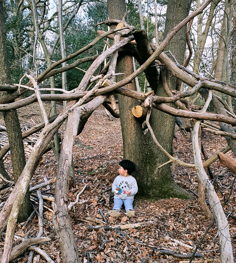 어릴 적 숲에서 가장 좋아했던 놀이는 우리들만의 비밀장소, 아지트를 만드는 것이었다. 아지트를 만들고, 그곳이약속 장소가 되었던 기억이있다.아이와 함께 아지트를 만들어보기 위해 쓰러진 통나무를 줍고, 굵은 나뭇가지, 잔가지들을 하나둘씩 주워 기둥을 세운다. 얼기설기해 보이지만 아이는숲의 재료로 뚝딱 우리만의 비밀 아지트를 완성하며숲 속 꼬마 건축가가 되어본다.
