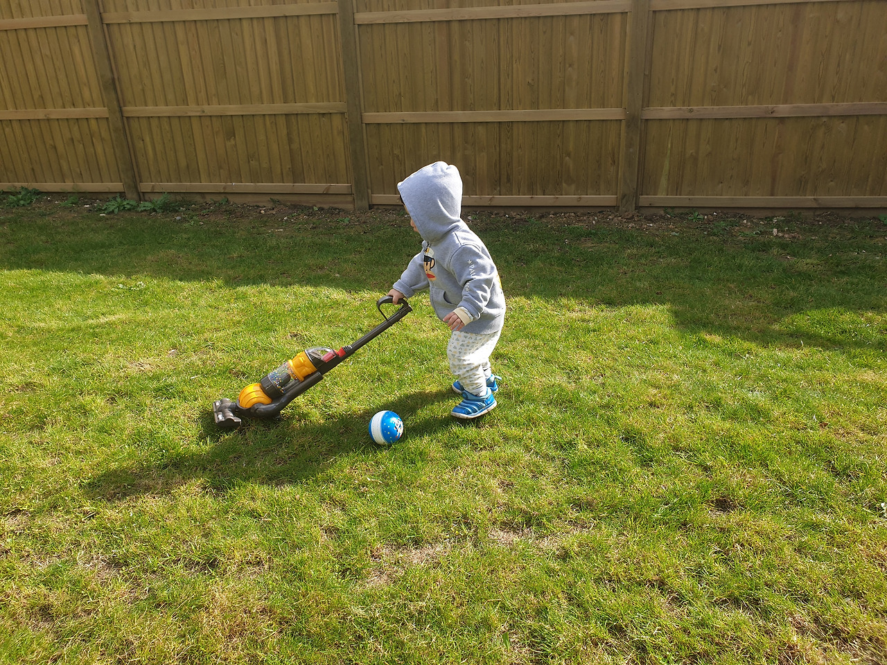 아빠가 일주일 또는 2주에 한번 잔디 깎는 모습을 보며 옆에서 똑같이 따라 해 본다. 잔디 깎기는 이제 자연스러운 본인의 일이 되었다.