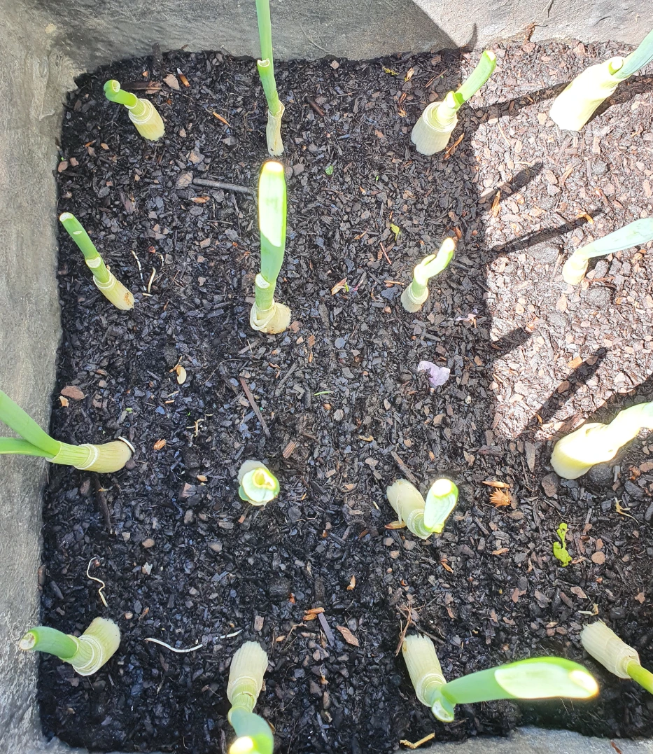 파뿌리는 물에만 담가도 자라요! 어느새 뿌리가 내려 화단에 옮겨 심어 보았다. 쑥쑥 빠르게 자라나서 아이가 먹는 국에 잘라 넣어 낯설지만 수확의 맛을 보았다.