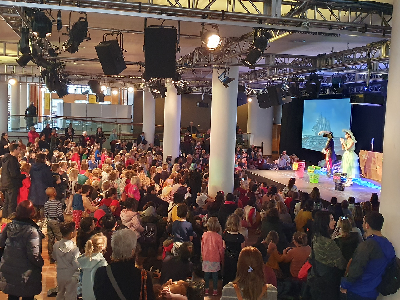 로열 페스티벌 홀에서 하루 2회 무료공연으로 여장을 한 배우들이 바닷속 탐험하는 얘기를 스토리텔링 형태로 풀어내는 데 아이의 엉덩이가 들썩이며 웃고 춤을 따라 하는 것만으로도 즐거운 공연이었다.