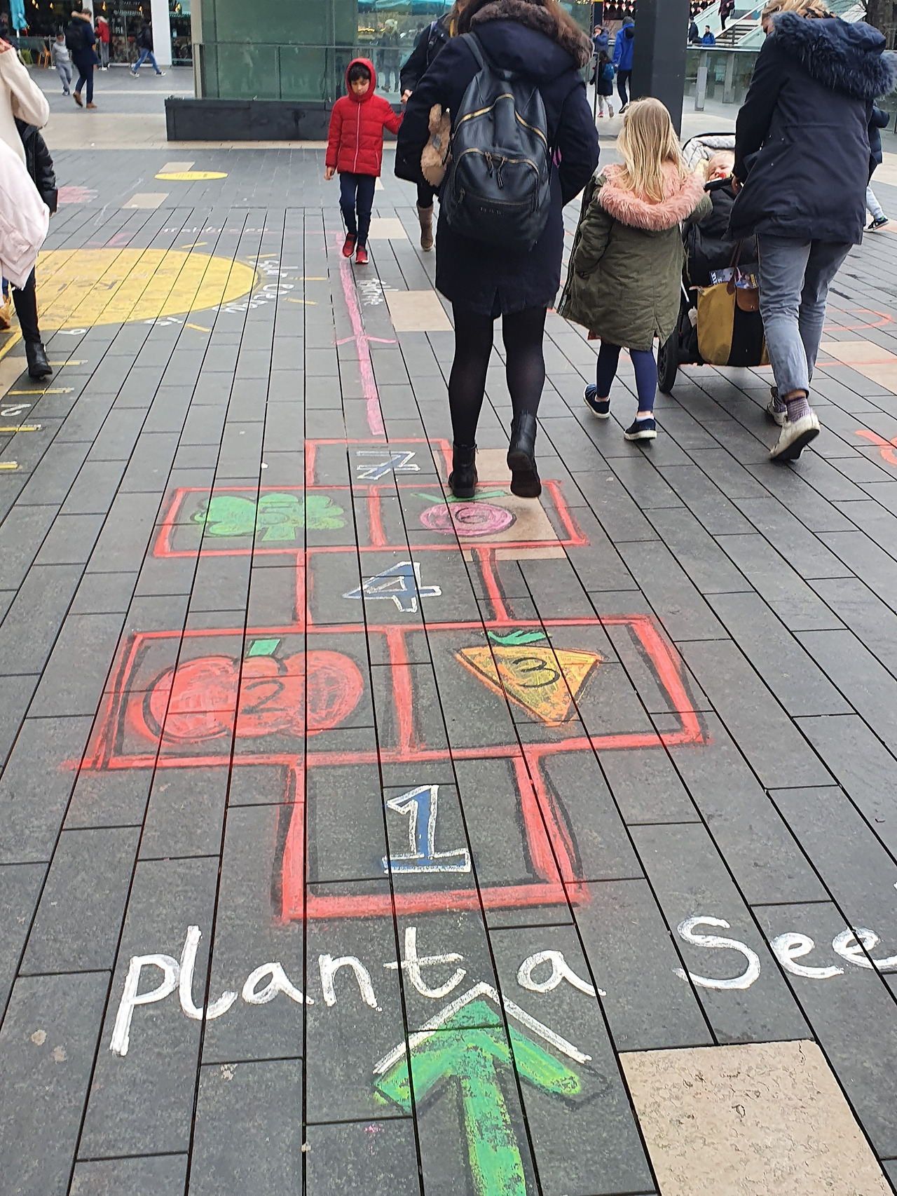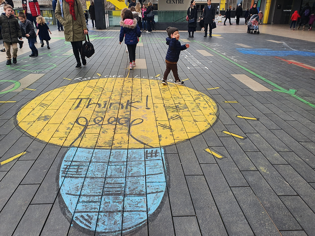 - 발 그림(footprints)을 따라가다 보면 물, 태양, 바람 등과 같이 생활 속에서 에너지를 얻을 수 있는 요소들을 심볼화 시켜 지구 에너지를 재미나게 만드는 방법을 게임으로 만든 라인 드로잉을 볼 수 있다. 사우스뱅크 센터 곳곳에 Eath Activity Trail를 찾아내는 프로그램을 진행하고 있어 아이들 스스로 지구를 위해 실천할 수 있는 요소를 찾아내도록 부모들에게 체크 보드를 건네 주기도 한다.
