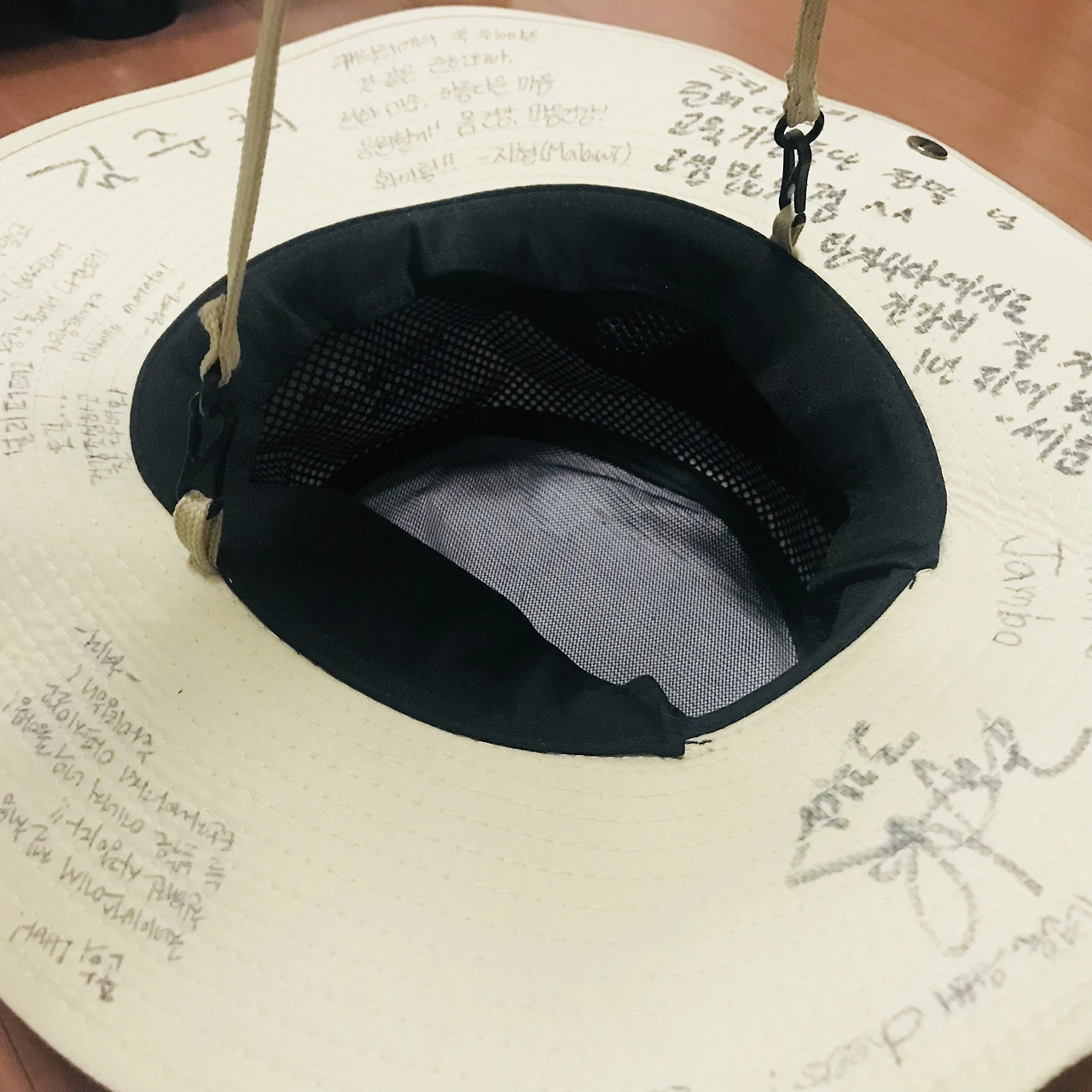 KCOC 2주 합숙 교육을 마치고, 각자 파견되는 국가에 가기 전 동기 단원들이 모자에 적어준 롤링페이퍼.