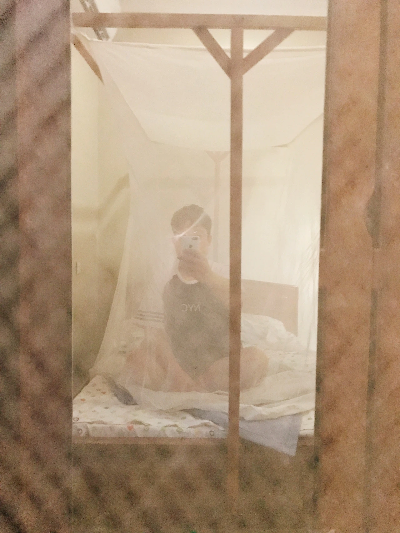 사진에 보이는 것과 같이 침대와 모기장이 사이즈가 맞지 않아 제대로 설치가 되지 않았지만, '대충 모기장 안에 있기만 하면 되겠지' 하는 생각으로 별로 신경을 쓰지 않았다.