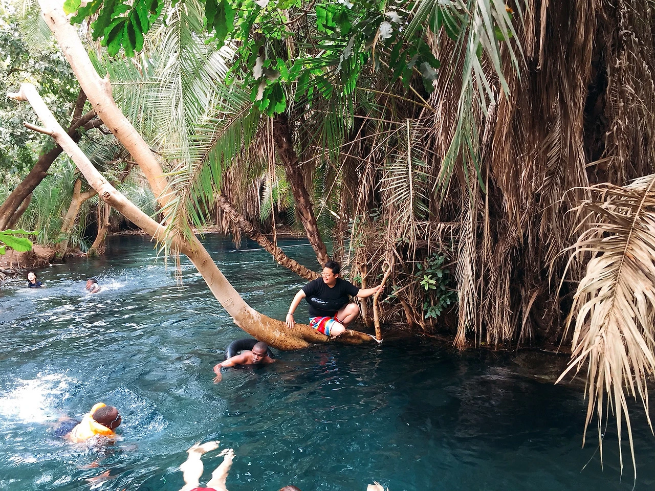 진한 에메랄드빛 물결이 햇빛을 받아 영롱하게 빛나고 있던 생각보다 넓고 깊었던 호수. 우리는 튜브를 빌려 물놀이도 하고, 나무에 걸려 있는 밧줄을 타고 타잔 놀이도 하면서 마치 초등학생들 소풍 온 것처럼 즐겁게 놀았다. 그날 그곳에 외국인 여행객들도 있었는데, 물놀이가 매개체가 되었는지 금세 어울려서 같이 놀았던 것 같다.