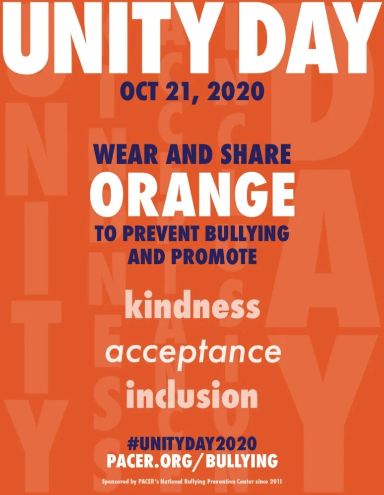 October is National Bullying Prevention Month. In solidarity with bullying prevention, students are invited to wear Orange to tomorrow's classes.