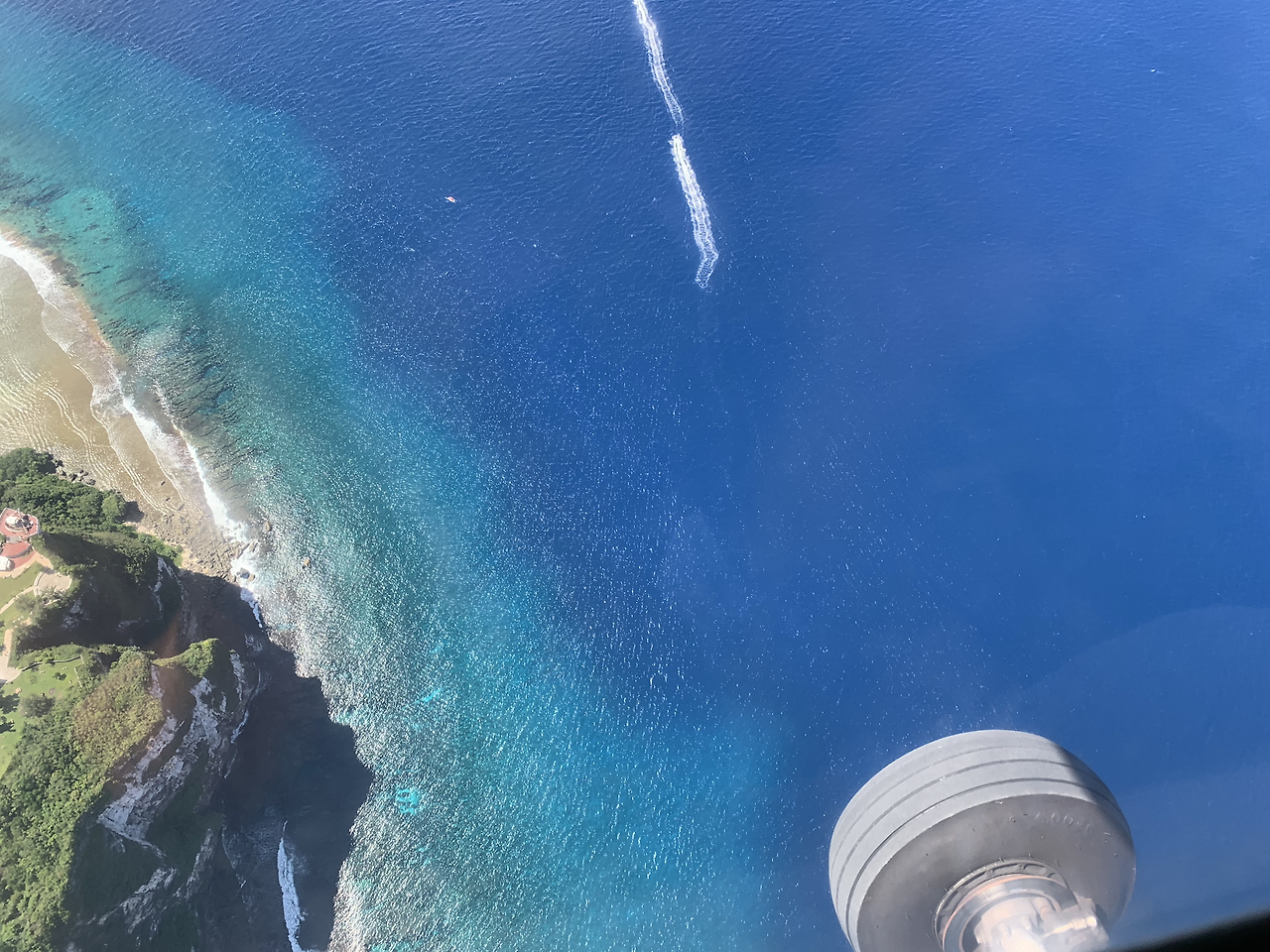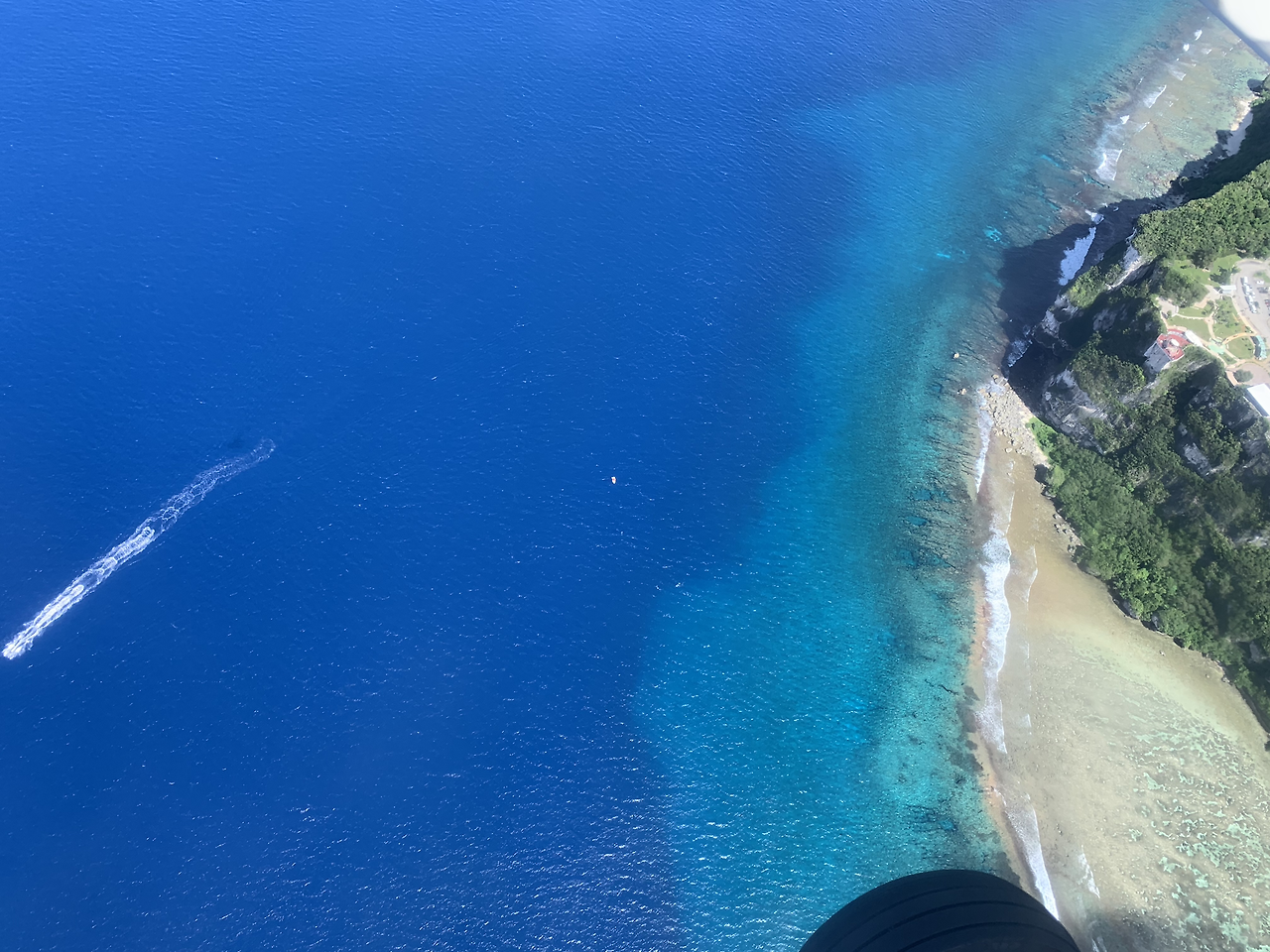 사랑의 절벽부터 피쉬아이마린파크 해변까지. 그리고 우리 집도 보였다. 저 넓은 바다에 내가 발을 디딘 곳은 에메랄드 색 부분뿐이라니, 어차피 나는 영원히 이 작은 섬나라의 발톱만큼도 경험하지 못할 한 명의 나그네일 뿐이라는 것을 깨달은 순간이다. 동시에 하늘 위를 드라이브하니 내 발 밑에 있는 모든 것들을 다 누리고 있는 느낌도. (아주 잠시)