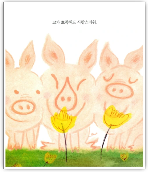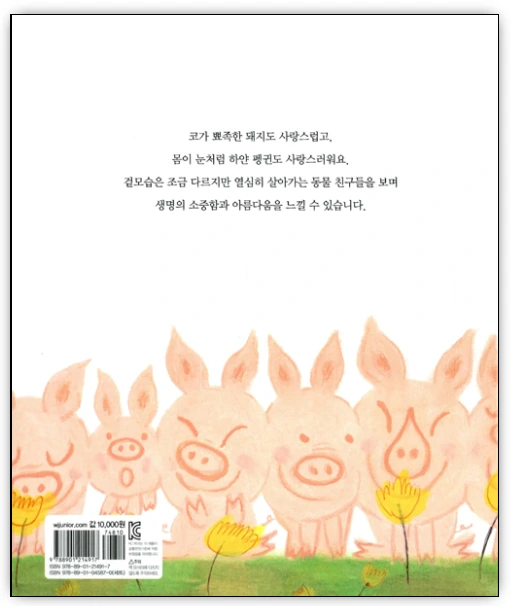 이 그림책은 우리 사회가 앞으로 가야 할 모습을 대신 보여주고 있다. 사랑스럽다고 말만 하지 않는다. 주변에 같이 있는 종들의 웃는 모습이 눈에 띈다. 아무렇지 않게, 누가 별종이고 돌연변이인지 분간이 안될 정도로 그들이 정답게 어우러져 있는 그림들이 보였다. 처음에는 글밥을 읽고 나서야 '아, 얘가 이렇다는 거구나.' 하며 뭐가 다른지 그제야 눈에 띌 정도로 다름이 느껴지지 않았다.