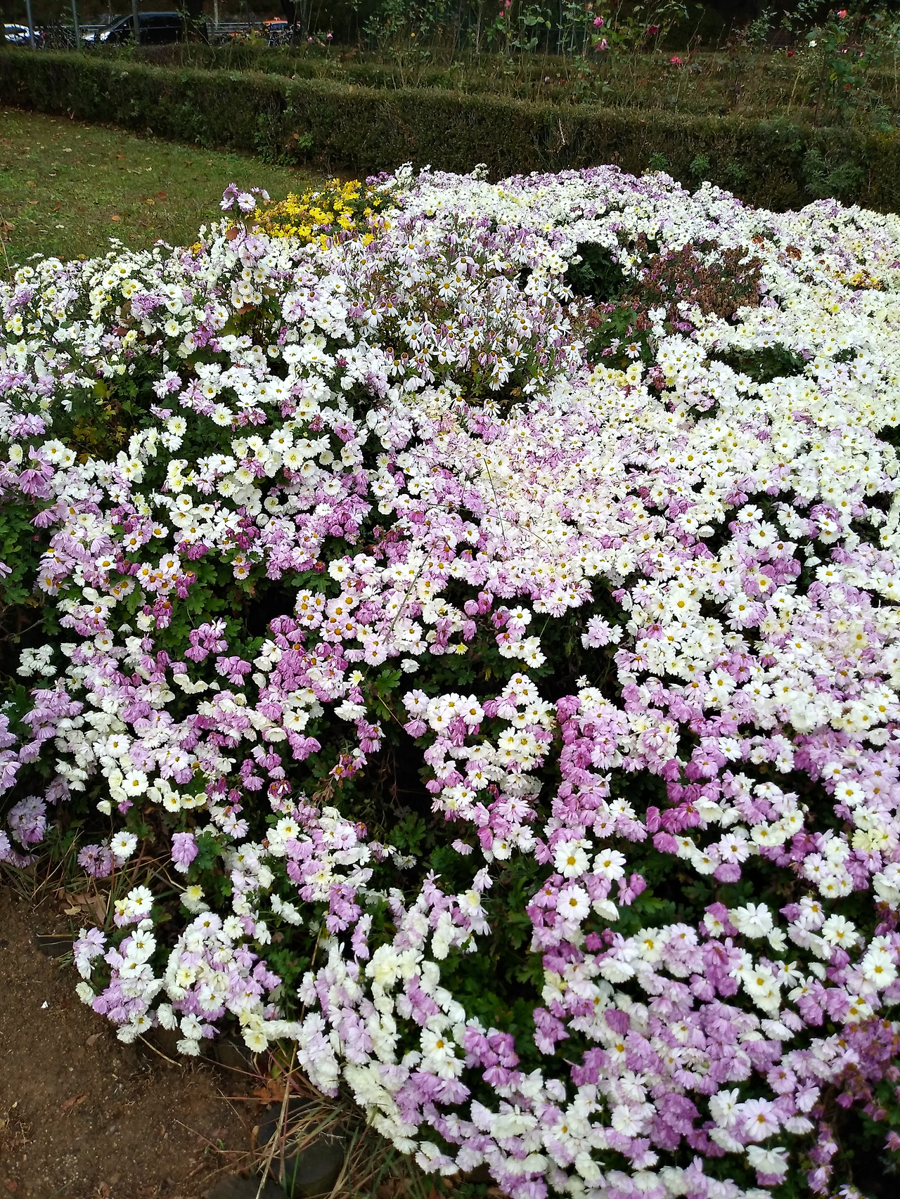 낙엽만 연신 쳐다보며 걷다 한 곳에 무리 지어 피어있는 꽃을 봤어요. 이런 날씨에 아직도 꽃이라니 하늘의 무슨 조화인가 싶어 가까이 가 꽃을 봅니다. 스산한 가을 풍경에도 '나 아직 죽지 않았어'하며 짠하고 등장하는 말괄량이 같습니다. 오래도록 버텨주기를 바랍니다.
