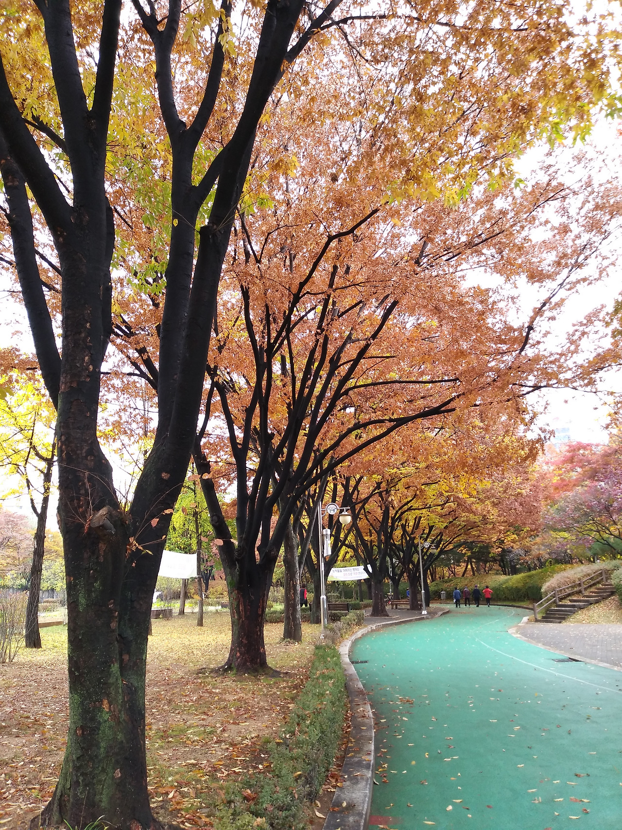 다행히 아이들 학교 갈 시간에는 비가 그쳐줬네요. 그 덕분에 비가 온 거리를 걸어보게 되었습니다. 귀에 꽂은 라디오에서도 그렇고 모두들 비가 온 후 쌀쌀해진 날씨를 얘기합니다. 그렇잖아도 오늘은 평소보다 옷을 더 껴입고 나와봤어요. 완연해지는 가을 정취가 참 좋긴 한데 운동 나올 때 점점 옷이 무거워지는 건 살짝 싫습니다. 조만간 손에 장갑도 껴야겠고 더 두터운 외투를 찾아 입어야겠죠.