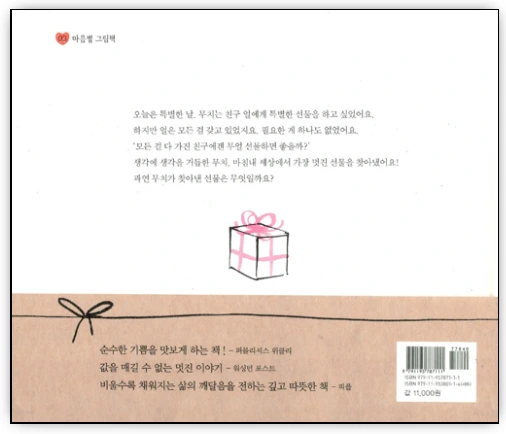 이 그림책은 거대하게 보자면 무소유에 관해 말하고 있다. 모자랄 것 없는 풍족한 시절이지만 항상 부족함을 느끼는 요즘 사람을 꼬집고 있기도 하다.