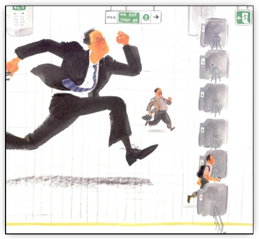 나는 지하철입니다 나는 달립니다. 매일 같은 시간, 매일 같은 길을 이야기는 독백으로 시작합니다. 매일 같은 시간 같은 길을 달리며 끝없이 이어지는 길 마디마디마다 사람들을 싣고 내리는 지하철의 목소리입니다. 지하철은 땅 위와 아래를 오르내리며 둥근 궤도를 돕니다. 덜컹덜컹, 출근 시간에는 잠든 사람들을 깨우기 위해 열차를 좀 더 힘껏 흔들고 한가한 오전 시간에는 오랜만에 만나는 승객에게 마음속으로 반가움의 인사도 건네며 많은 사람들이 피곤한 몸을 맡겨 오는 저녁 시간이면