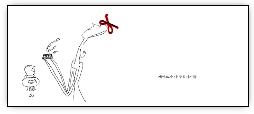 책 표지만 보더라도 빨간 끈을 매개로 이야기가 펼쳐지겠구나 짐작은 했다. 누가 먼저인지는 모르겠지만 우리나라 작가도 비슷한 시도를 한 그림책을 본 기억이 있다. 솔직히 그 기억 때문인지 이 그림책의 첫 느낌은 마냥 신기하고 설레기만 한 것은 아니었다.