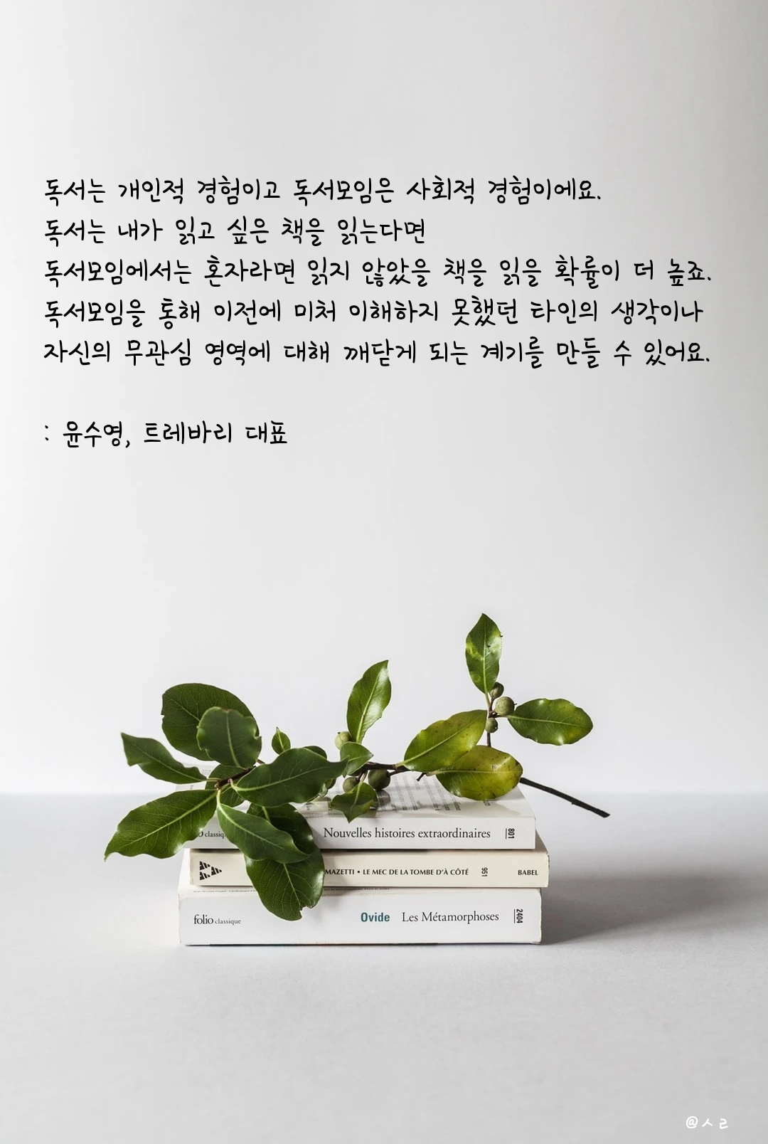 독서는 개인적 경험이고 독서모임은 사회적 경험이에요.