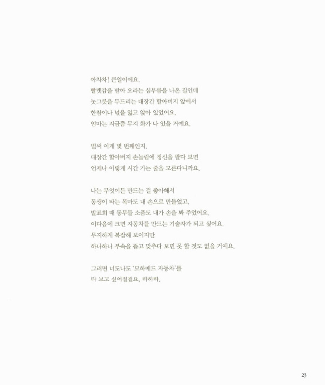 알아요, 왜 모르겠어요. 우리 아이들이 아침마다 독재자의 사진을 보며 뜻도 모르는 맹세를 해야 하는 건 안타까운 일이에요. 저기 양 떼를 몰고 가는 이웃집 오빠가 오마르예요. 오마르 오빠도 나도 동물을 아주 좋아해요