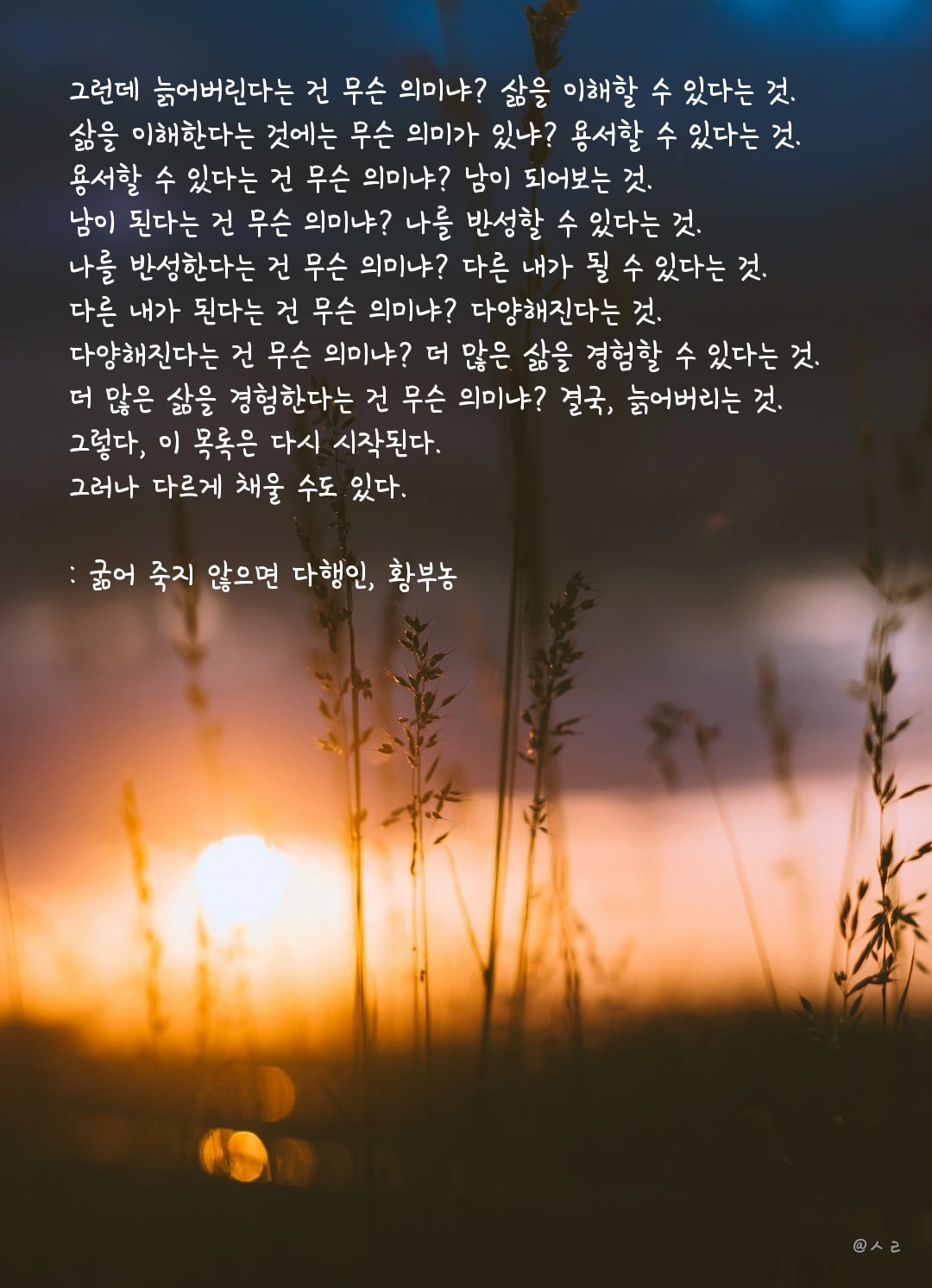그런데 늙어버린다는 건 무슨 의미냐? 삶을 이해할 수 있다는 것.