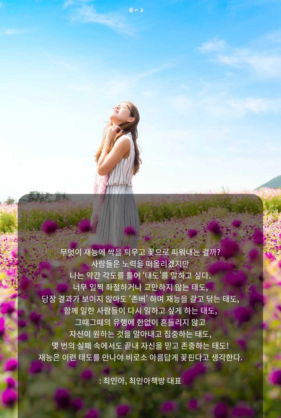 재능은 이런 태도를 만나야 비로소 아름답게 꽃핀다고 생각한다.