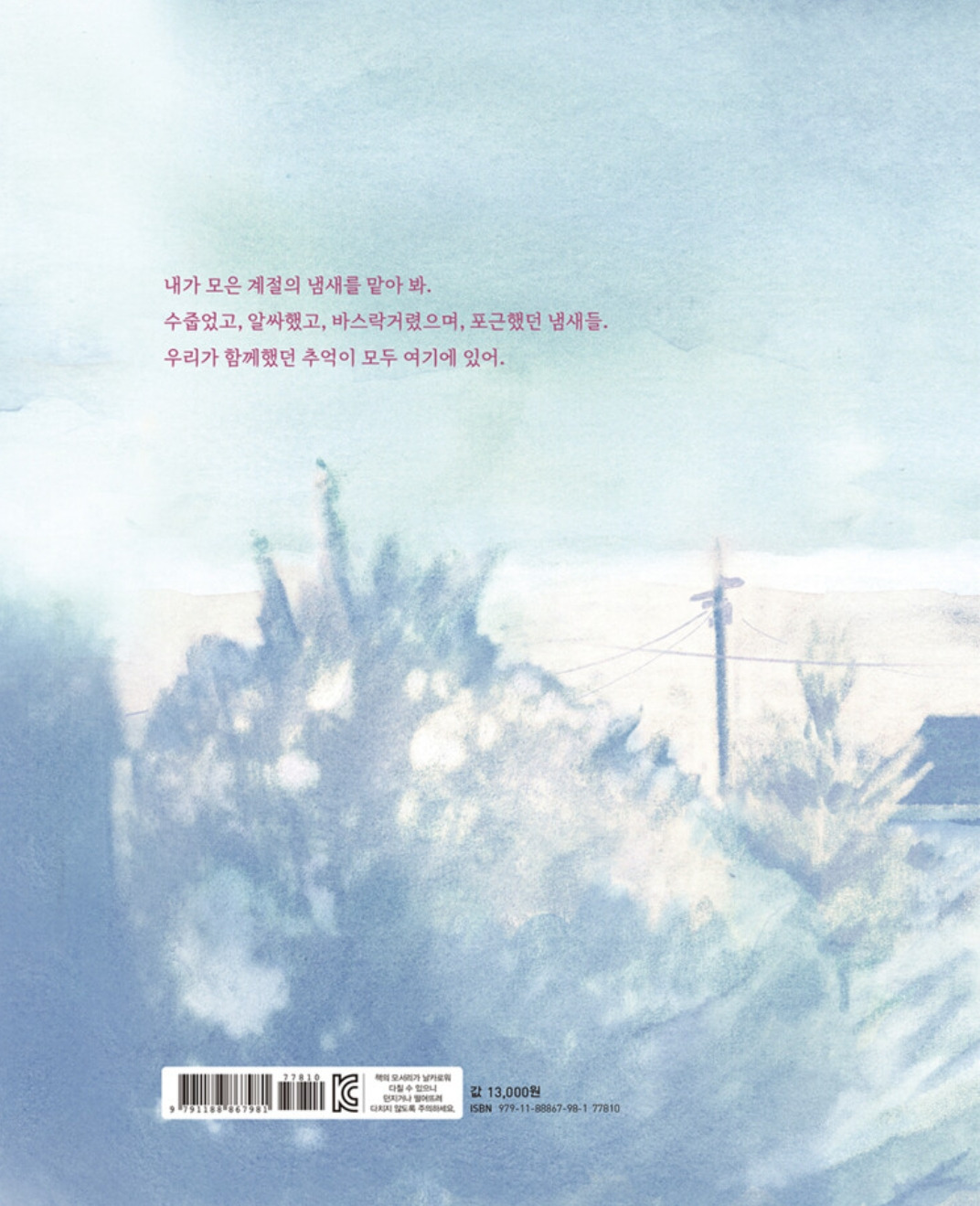 내가 모은 계절의 냄새를 맡아 봐. 수줍었고, 알싸했고, 바스락거렸으며, 포근했던 냄새들. 우리가 함께했던 추억이 모두 여기에 있어.