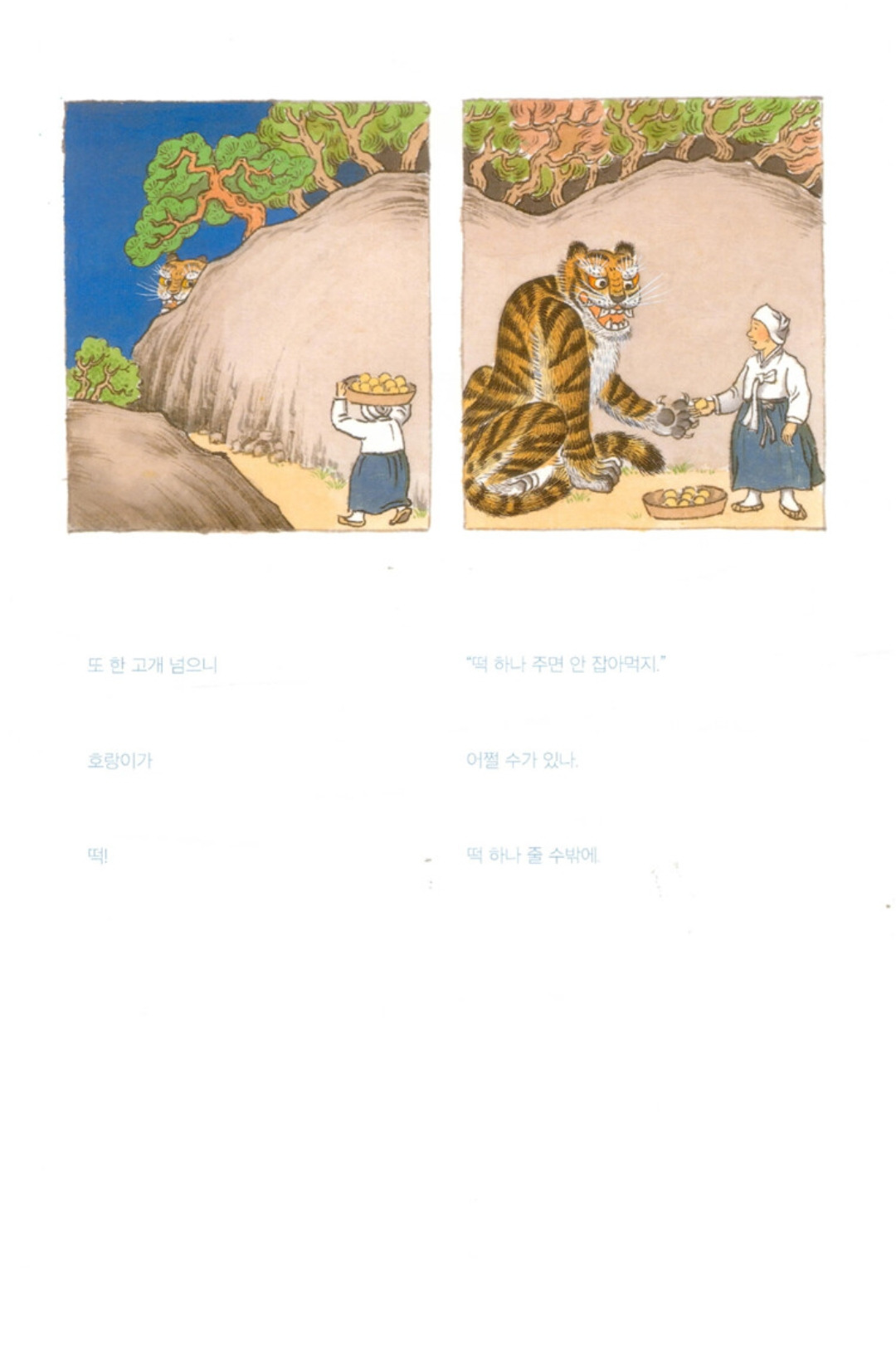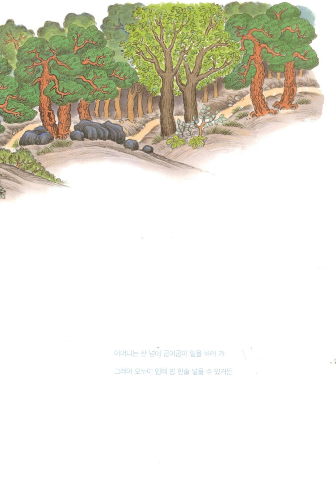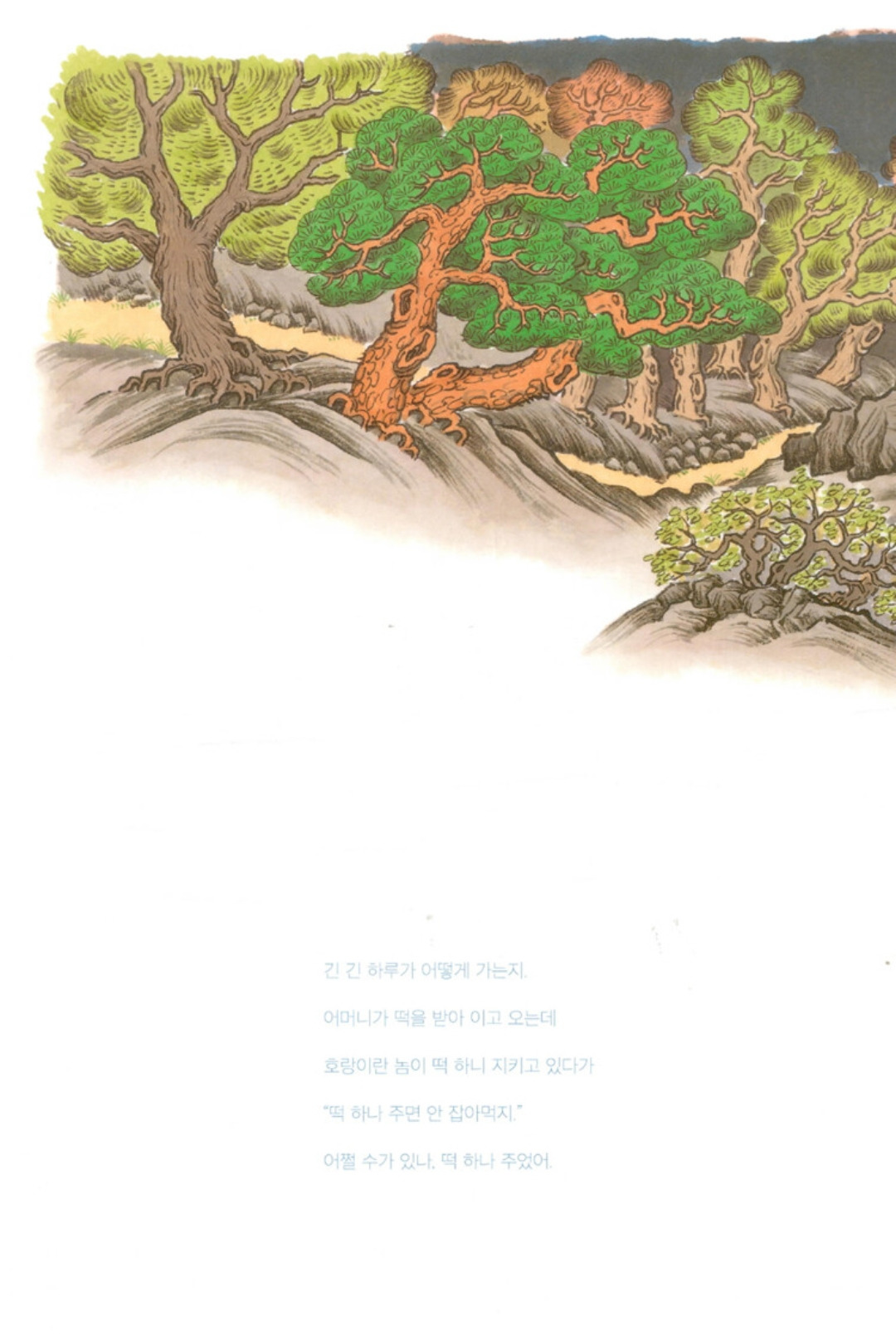 오누이 입에 밥 한 술 넣어 주기 위해 떡 팔러 나가는 엄마 모습이 애달프다. 어떤 말도 남기지 못하고 떠난 엄마는 오누이가 얼마나 걱정이 됐을까. 둘이 사이가 좋았거나 나빴거나 어쨌든 오누이는 슬기롭게 호랑이를 해결했다. 하늘로 올라가 해와 달이 된 오누이. 해와 달이 보이지 않는 날에는 무슨 일이 일어나는 걸까. 그 둘은 그날엔 엄마가 그리워 하늘에서 내려와 엄마와 살던 그 오두막집으로 와 서로를 만나는 건 아닐까. 해와 달이 되어 만날 수 없던 오누이 만남의 날이 아닌 걸까.