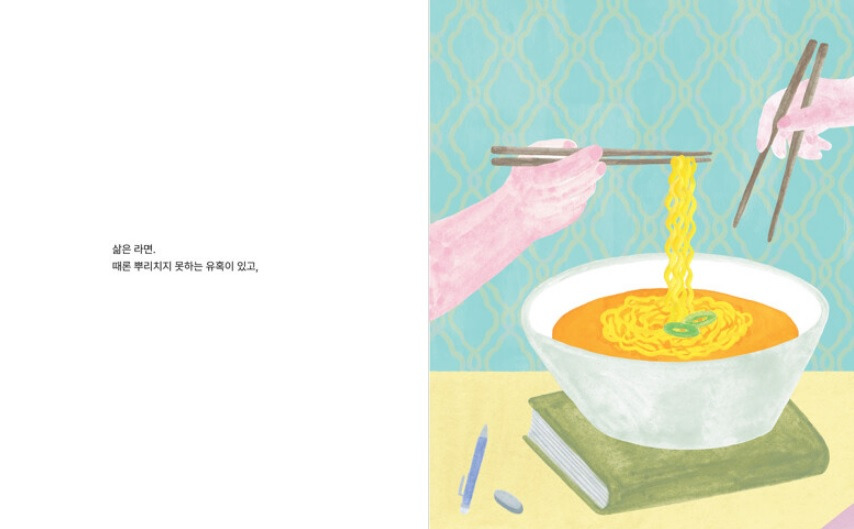 내게 건네는 위로의 말이 보인다. 이 음식들을 먹으며 잠시 쉬어가라 다독인다. 삶아진 삶의 글들은 흡사 잠언처럼 들렸다. 라면에서 잠시 군침이 돌기도 했지만 매일 먹는 음식들에서 고개가 끄덕여지는 인생의 말을 어떻게 이렇게나 잘 뽑아낼 수 있었을까. 안소민 작가는 시인이다.