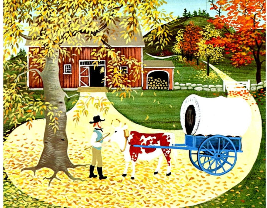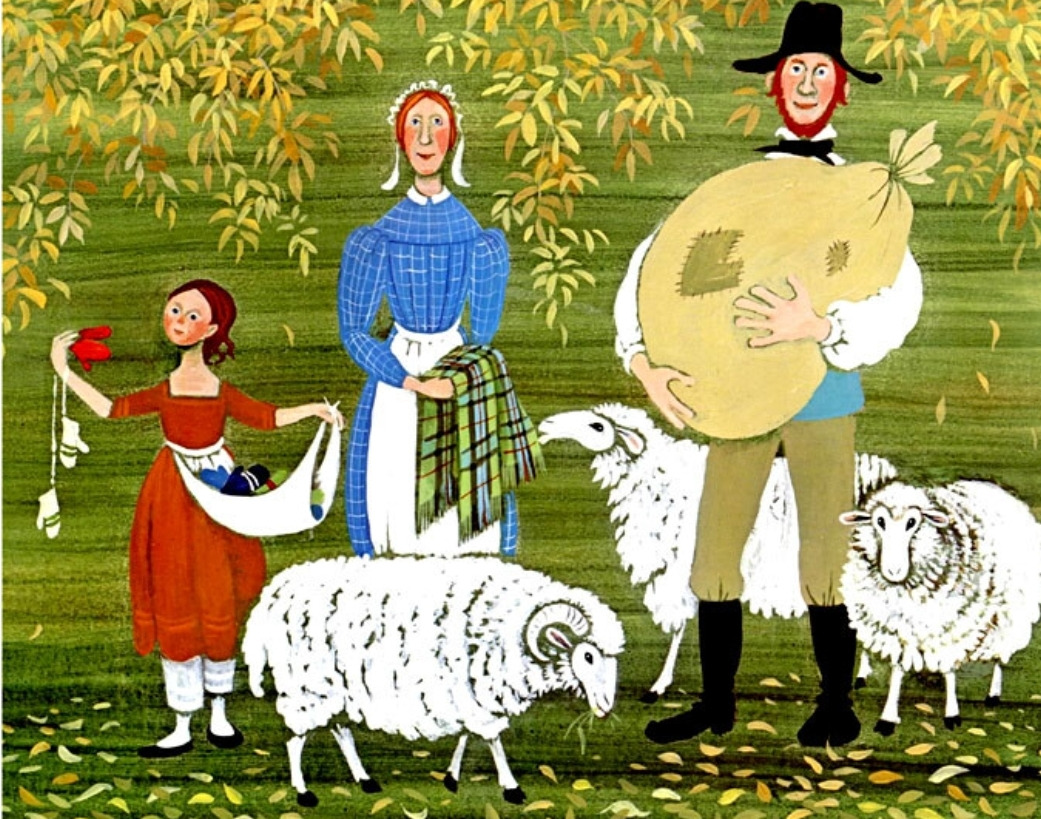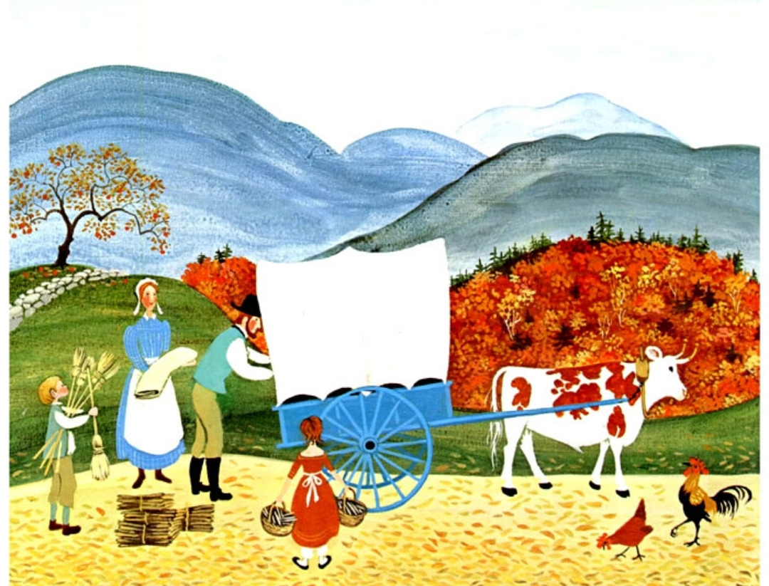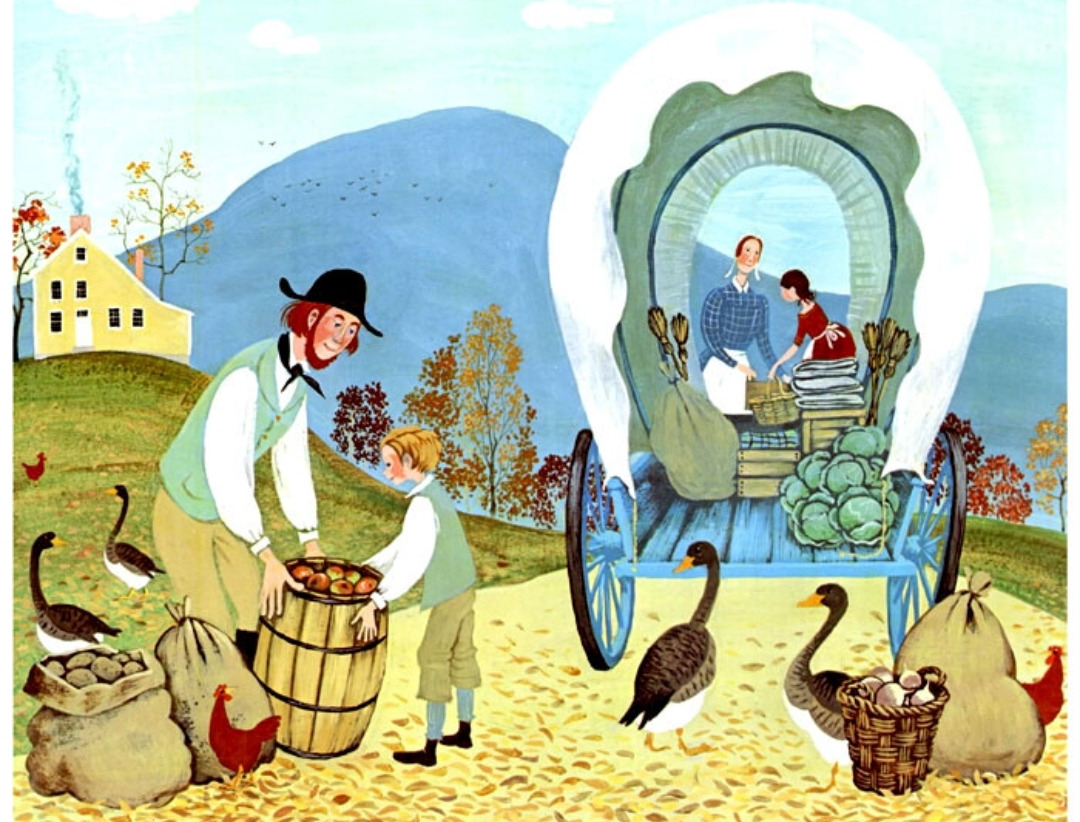 그림책 <달구지를 끌고>의 농부는 시장에서 무엇을 샀을까. 무쇠솥, 수예 바늘, 주머니칼, 앵두 맛 박하사탕뿐이다. 열흘 동안 걸어온 장에서 산 것들이 고작 이것뿐이라니! 가장을 애타게 기다렸을 가족을 위해서라도 더 살만도 할 텐데. 그러나 짐을 싣고 갈 달구지도 없으니 많이 살 수도 없는 노릇이다. 정작 그들에게는 필요한 것이 없었다. 자연이 다시 줄 것이며 필요한 것은 그 안에서 스스로 만들 수가 있기 때문이다. 자연과 협업하는 자급자족의 완벽한 조화!
