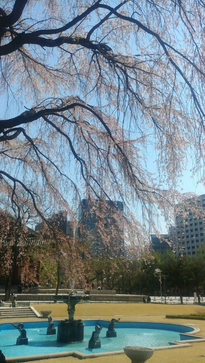 서울은 역시 고궁이지 하며 "우리도 한복 입고 고궁 좀 걸어볼까?" 야심 차게 생각만 하고 옛날 우리 엄마들처럼 나란히 서서 남든 건 사진뿐이지 하며 꽃 앞에서 연신 사진을 찍었습니다.