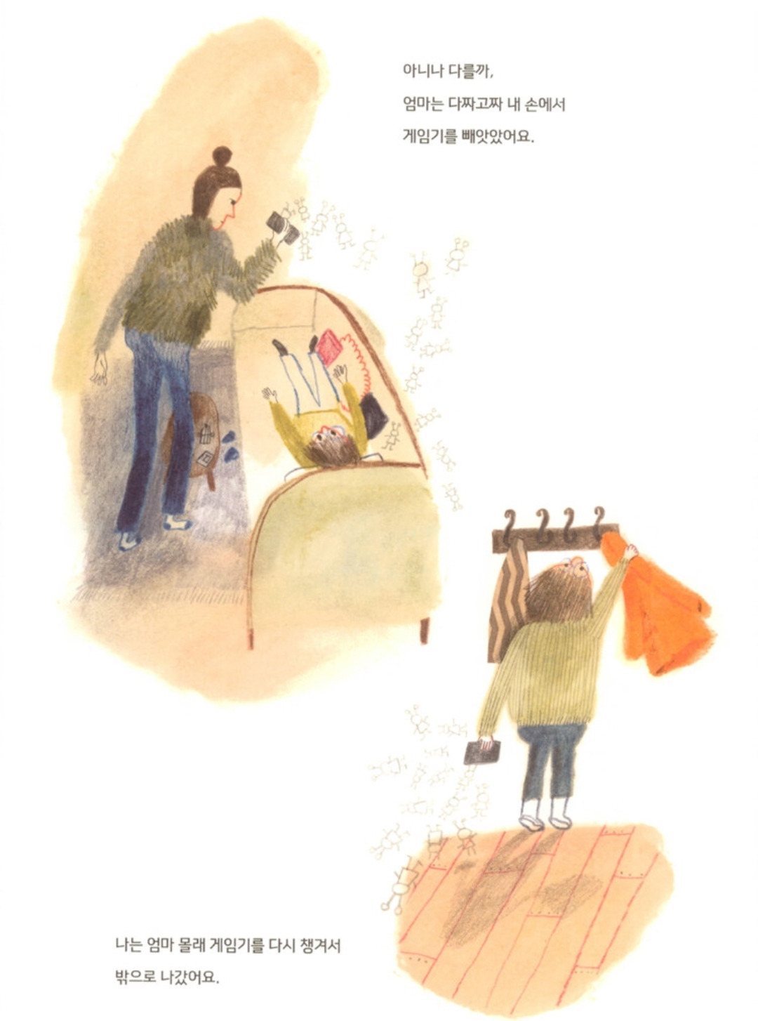 나는 엄마 몰래 게임기를 다시 챙겨서 밖으로 나갔어요.